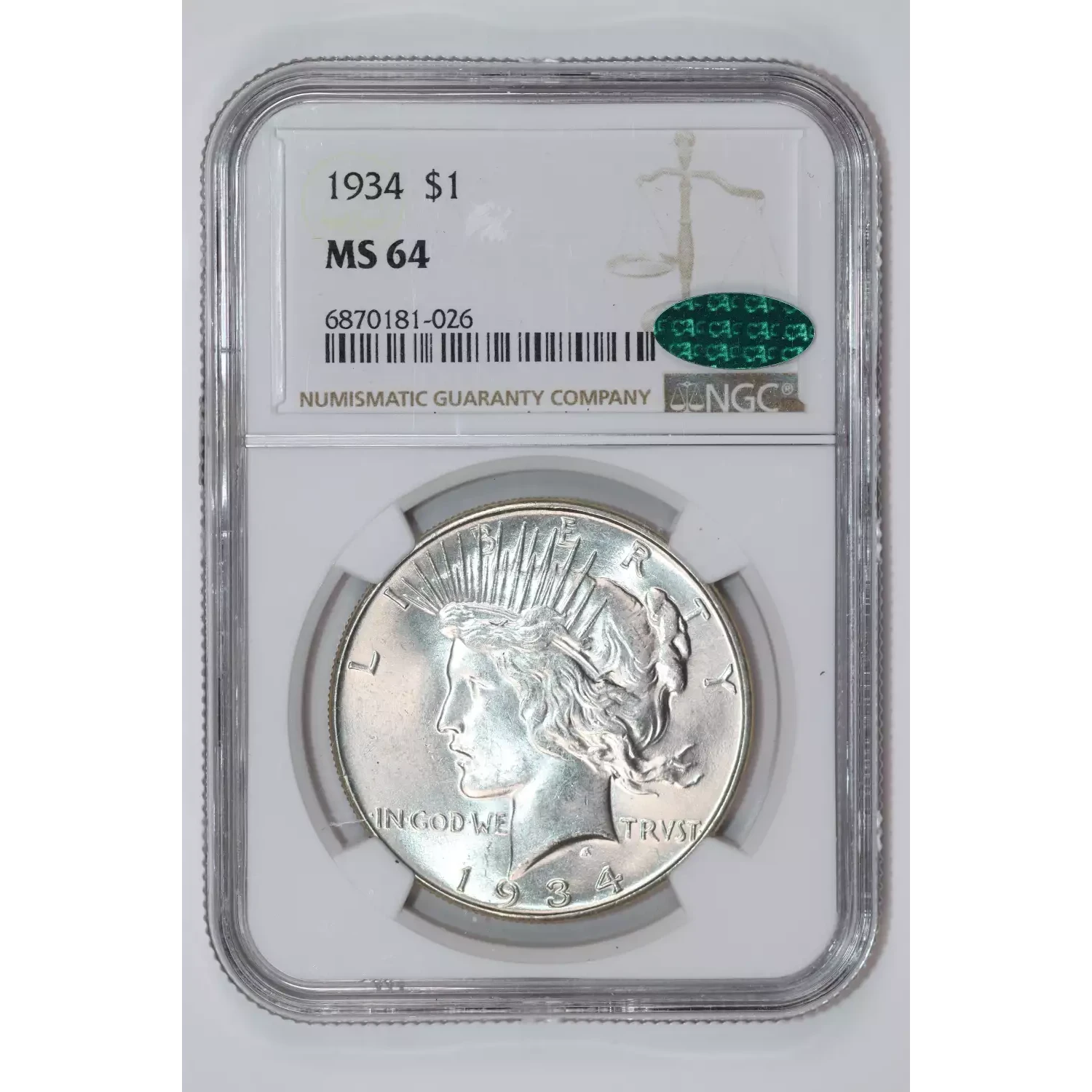 1934 PEACE DOLLAR NGC MS64 CAC - GORGEOUS PQ!