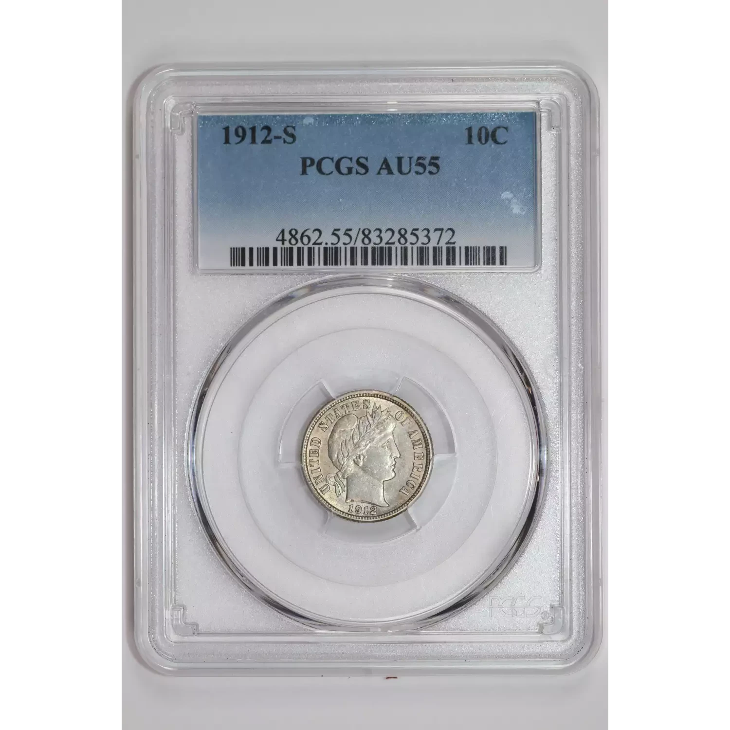 1912-S Dimes Barber or Liberty Head PCGS AU-55
