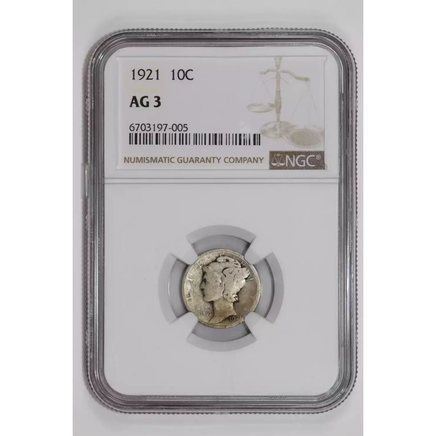 1921 Dimes Winged Liberty Head or Mercury NGC AG-3
