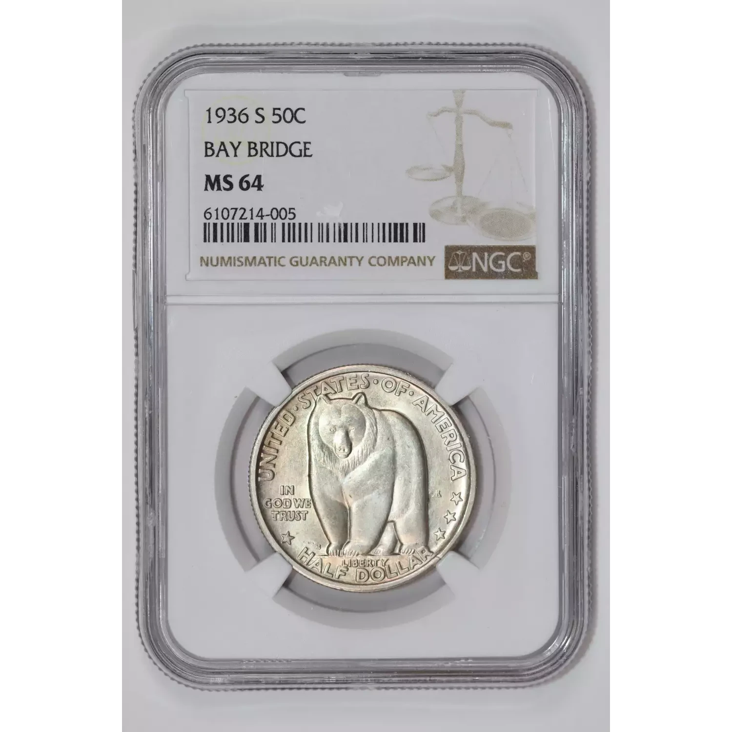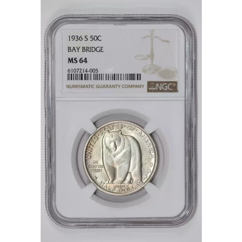 1936-S BAY BRIDGE COMMEMORATIVE HALF DOLLAR NGC MS64