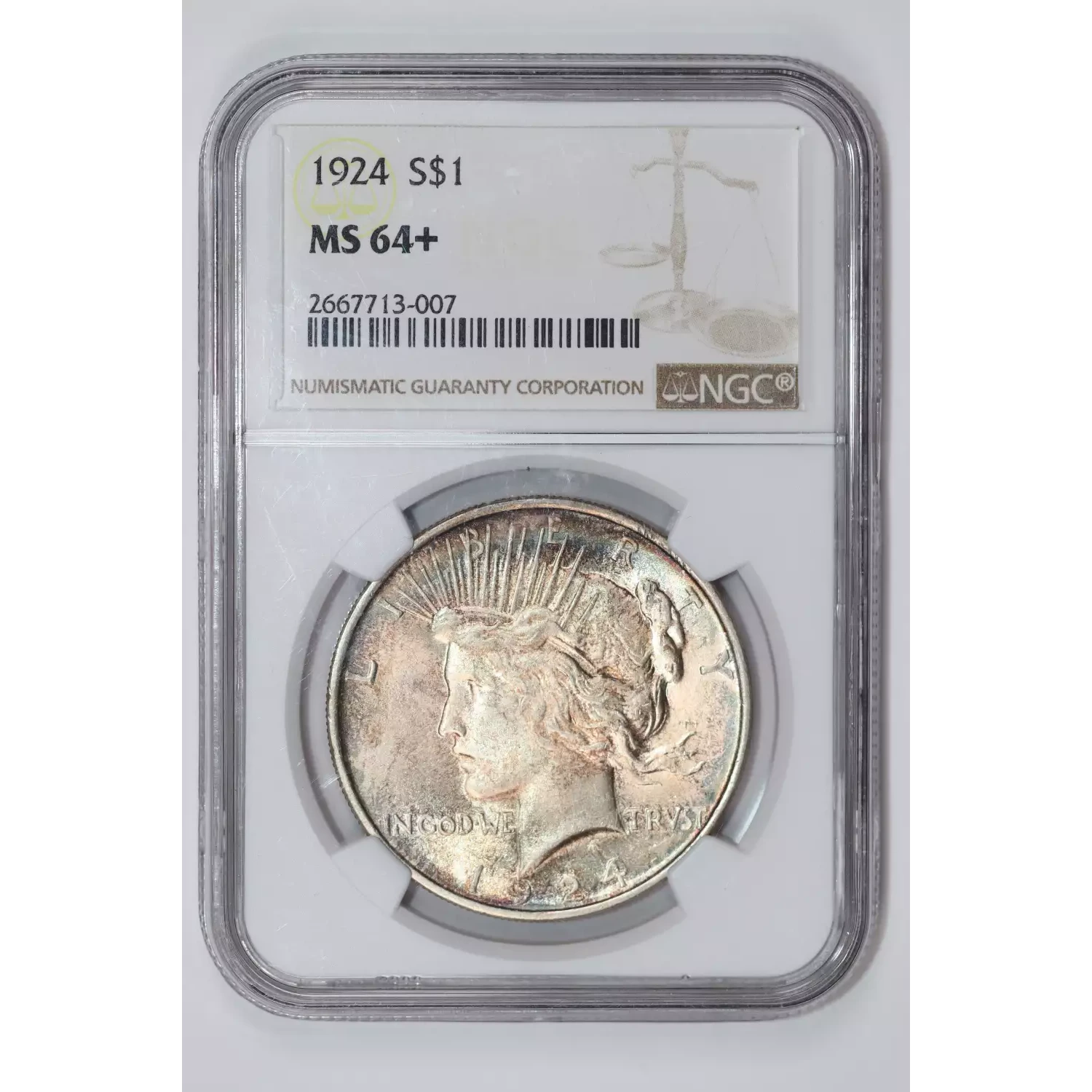 1924 PEACE DOLLAR NGC MS64+ PQ!