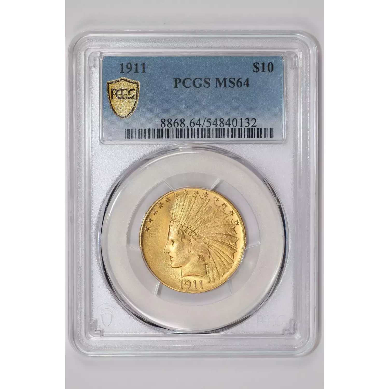 1911 $10 GOLD INDIAN EAGLE PCGS MS64