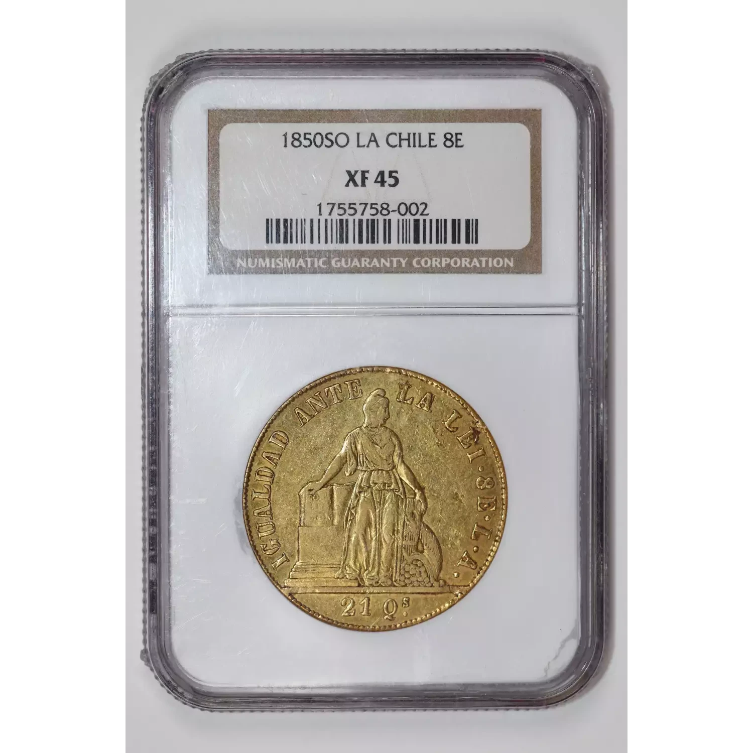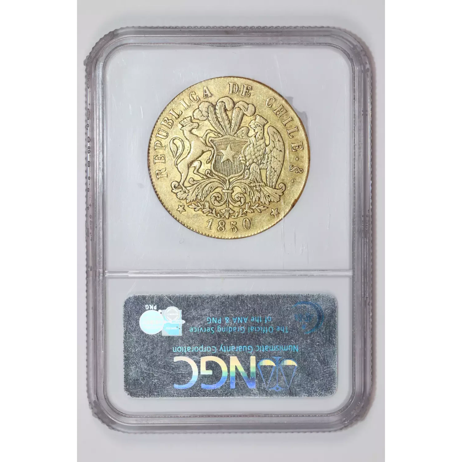 1850 SO LA CHILE GOLD 8 ESCUDOS NGC XF45
