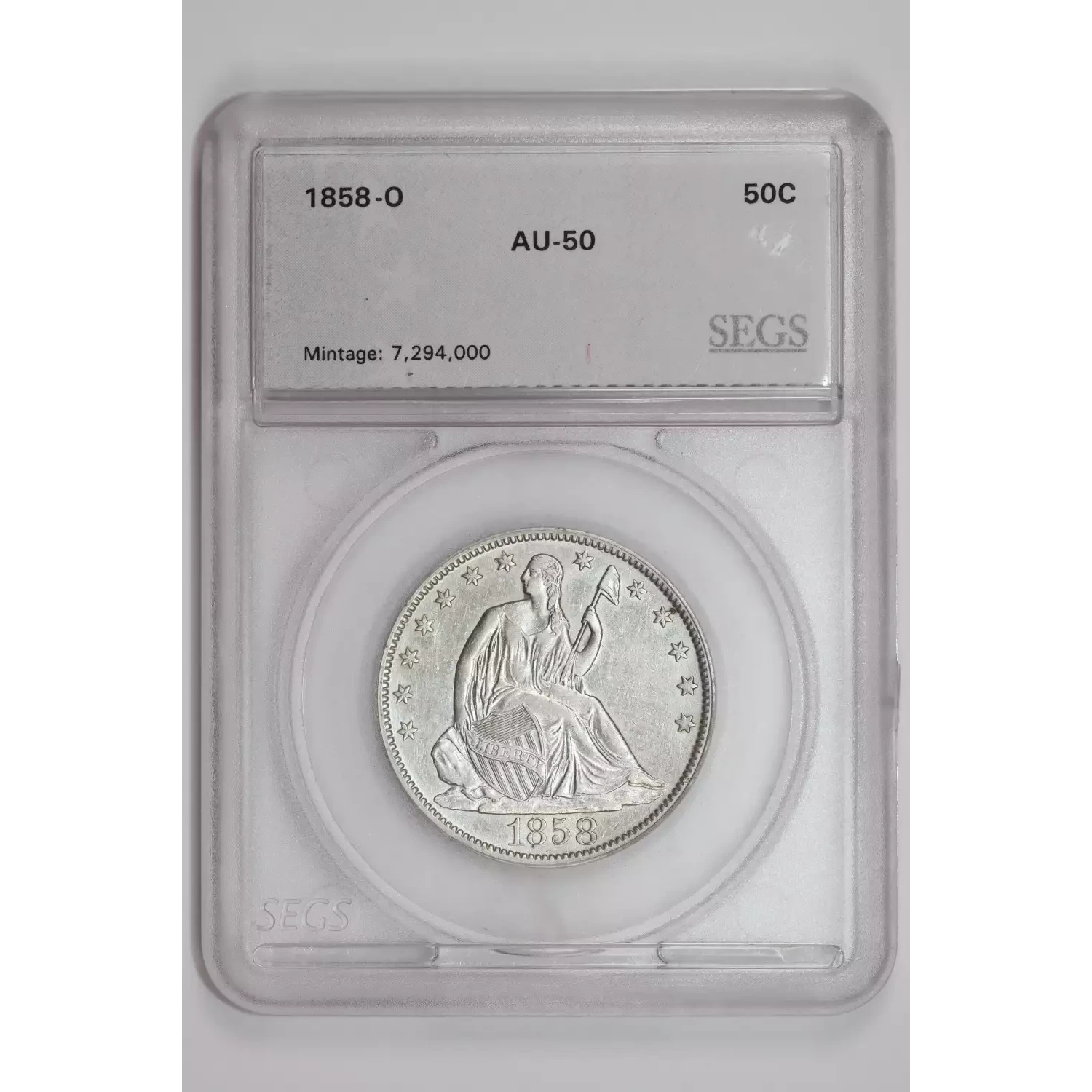 1858-O SEATED LIBERTY HALF DOLLAR CHOICE AU