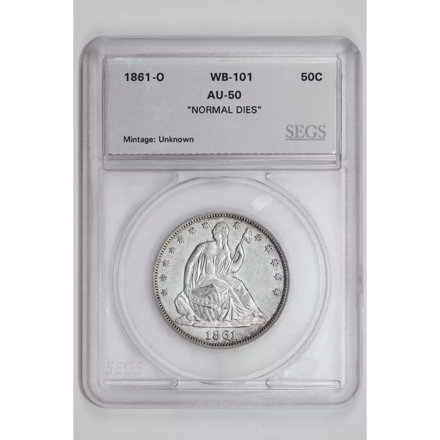 1861-O SEATED LIBERTY HALF DOLLAR 'NORMAL DIES" CHOICE AU