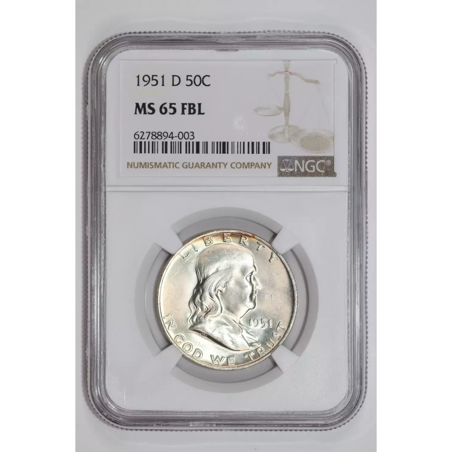 1951-D FRANKLIN HALF DOLLAR NGC MS65 FBL