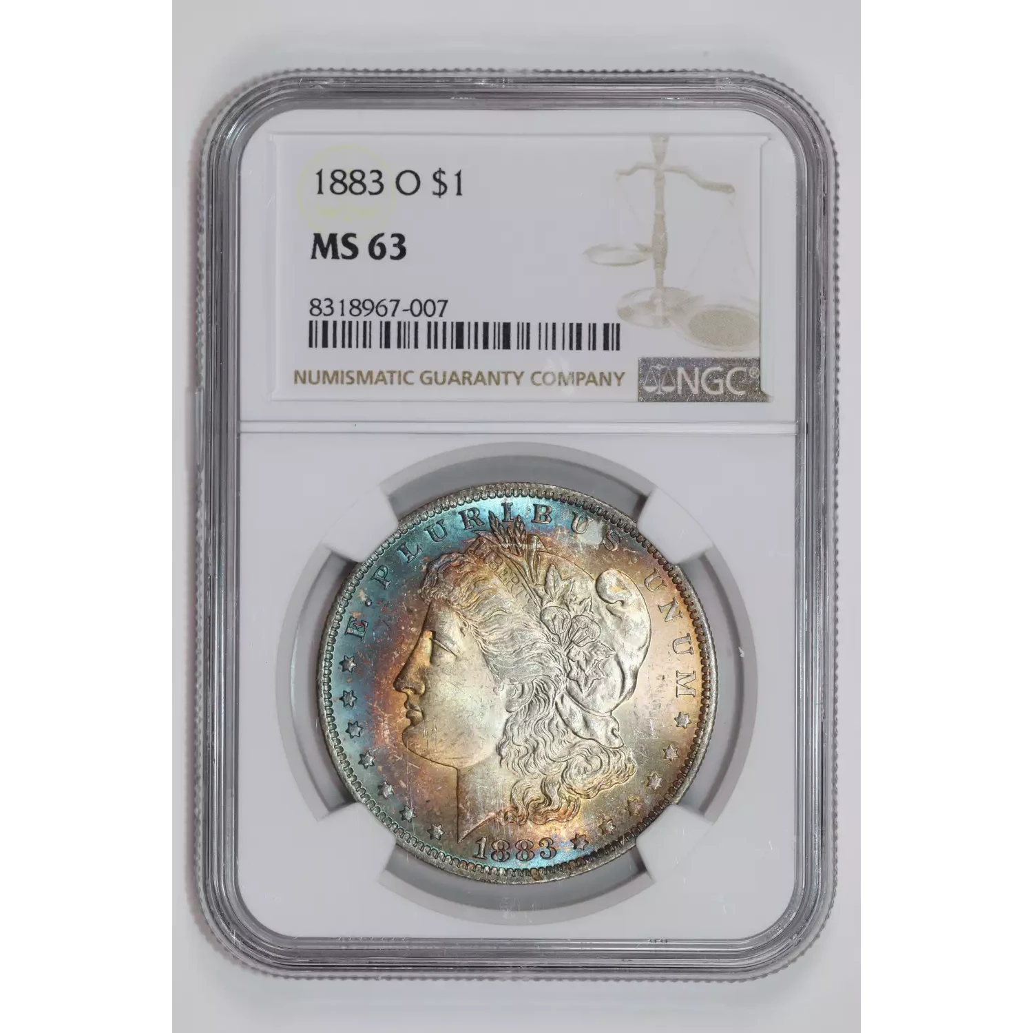 1883-O MORGAN DOLLAR NGC MS63 RAINBOW TONING!