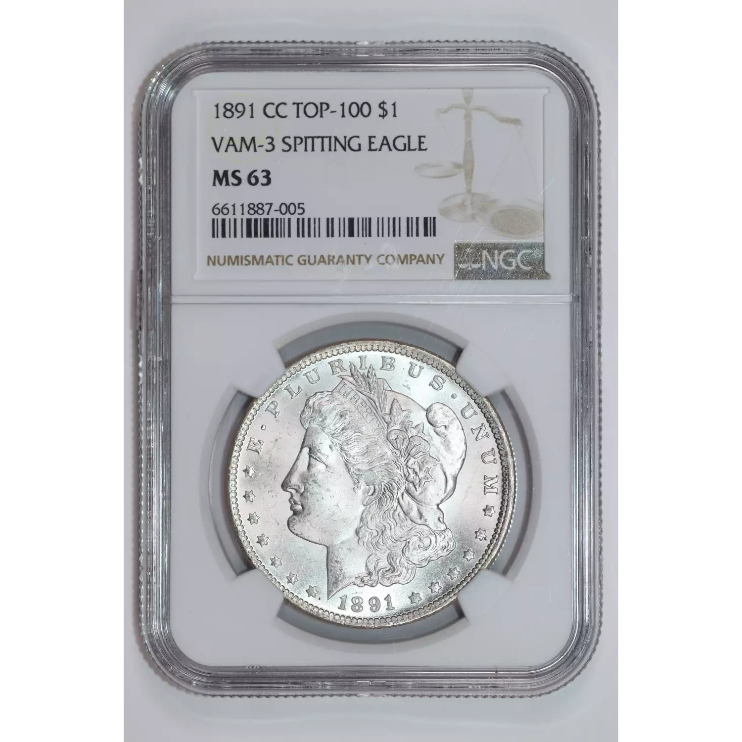 1891-CC VAM-3 SPITTING EAGLE MORGAN DOLLAR NGC MS63