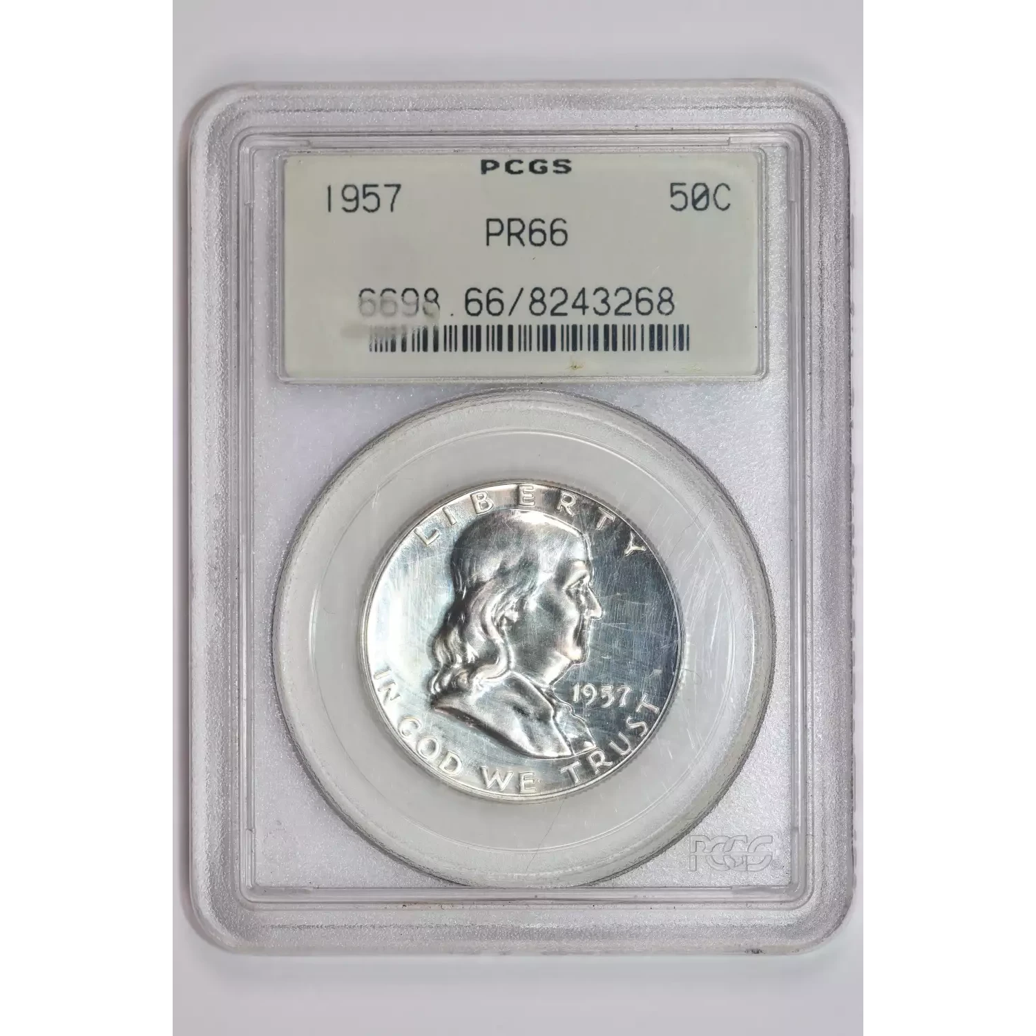 1957 PROOF FRANKLIN HALF DOLLAR PCGS PR66 OGH PQ! LOOKS NICER!