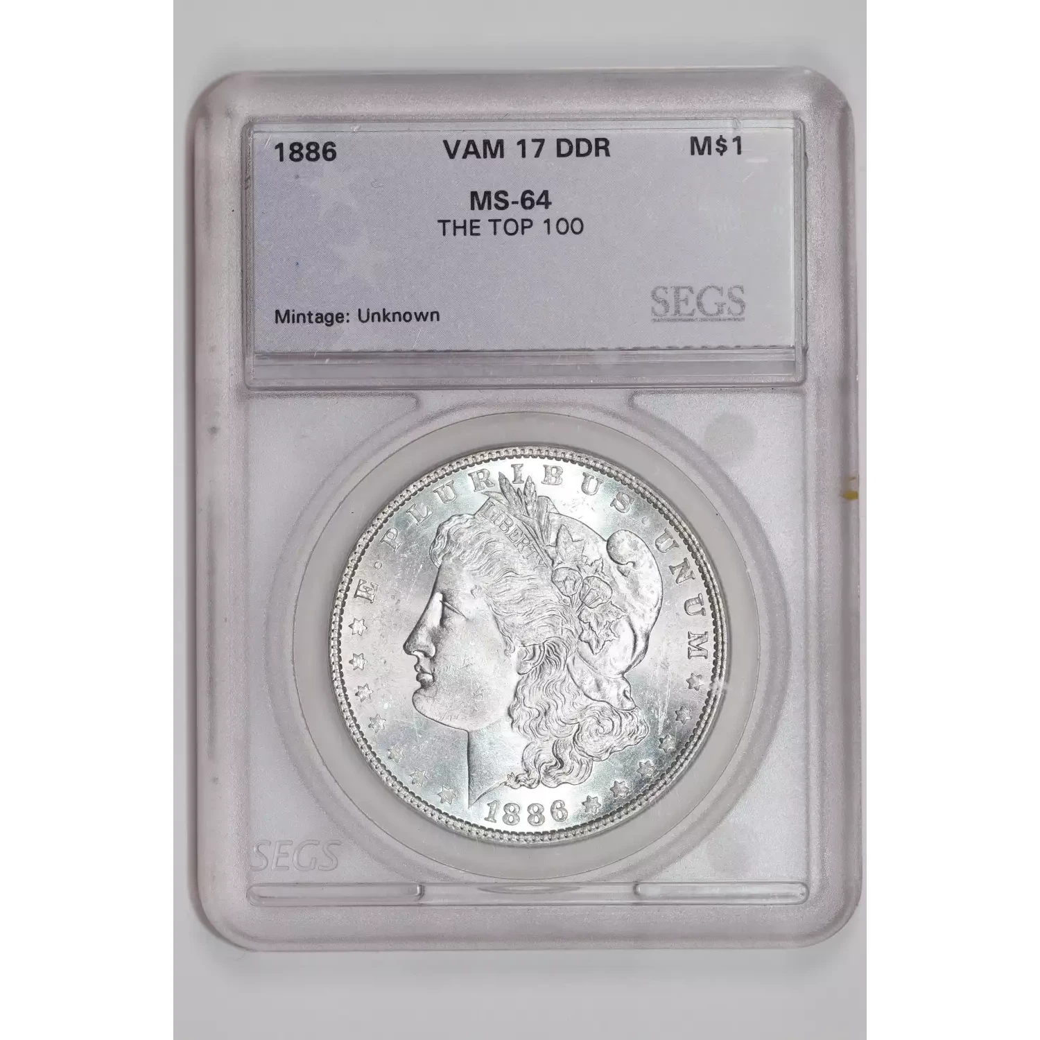 1886 VAM-17 DOUBLED DIE REVERSE TOP 100 MORGAN DOLLAR CHOICE UNC++