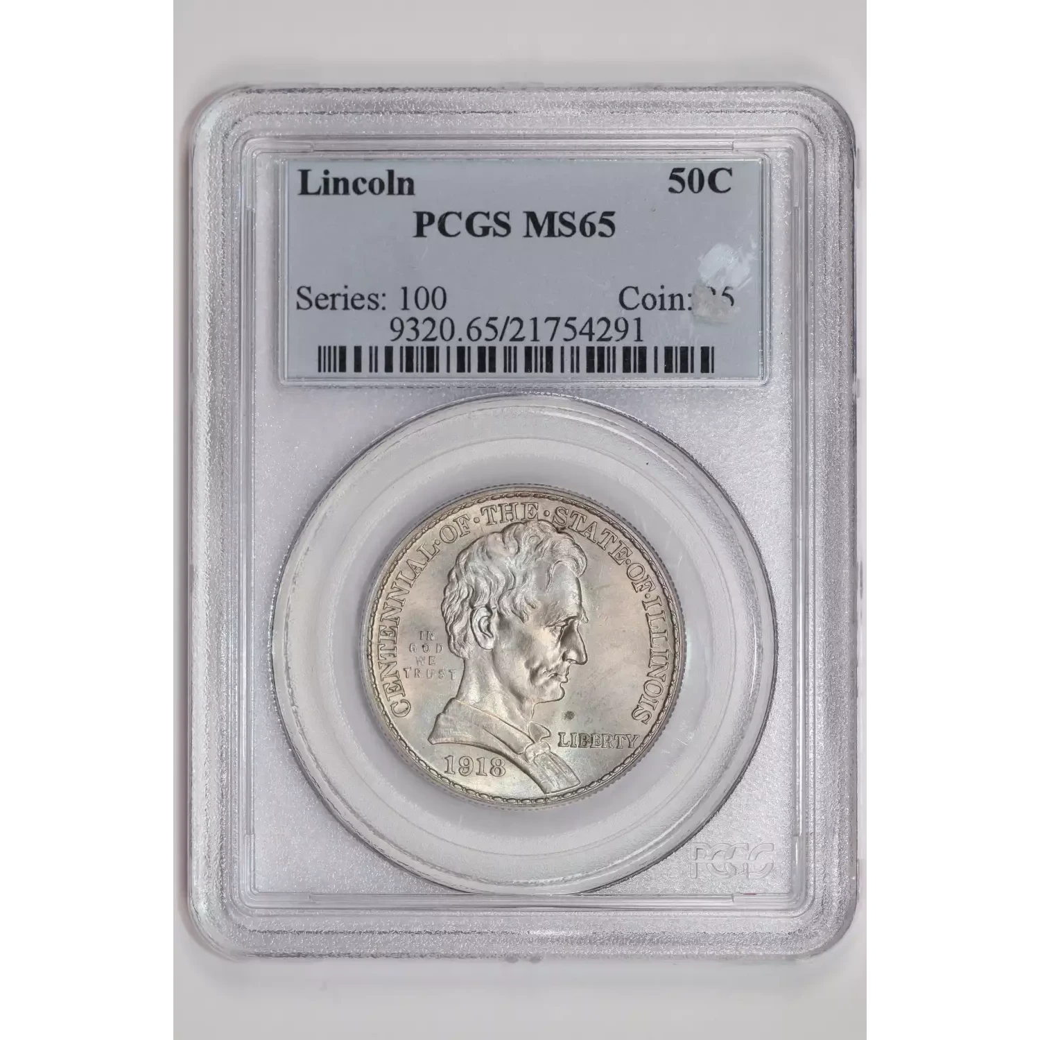 1918 LINCOLN ILLINOIS COMMEMORATIVE HALF DOLLAR PCGS MS65 ORIGINAL PQ!