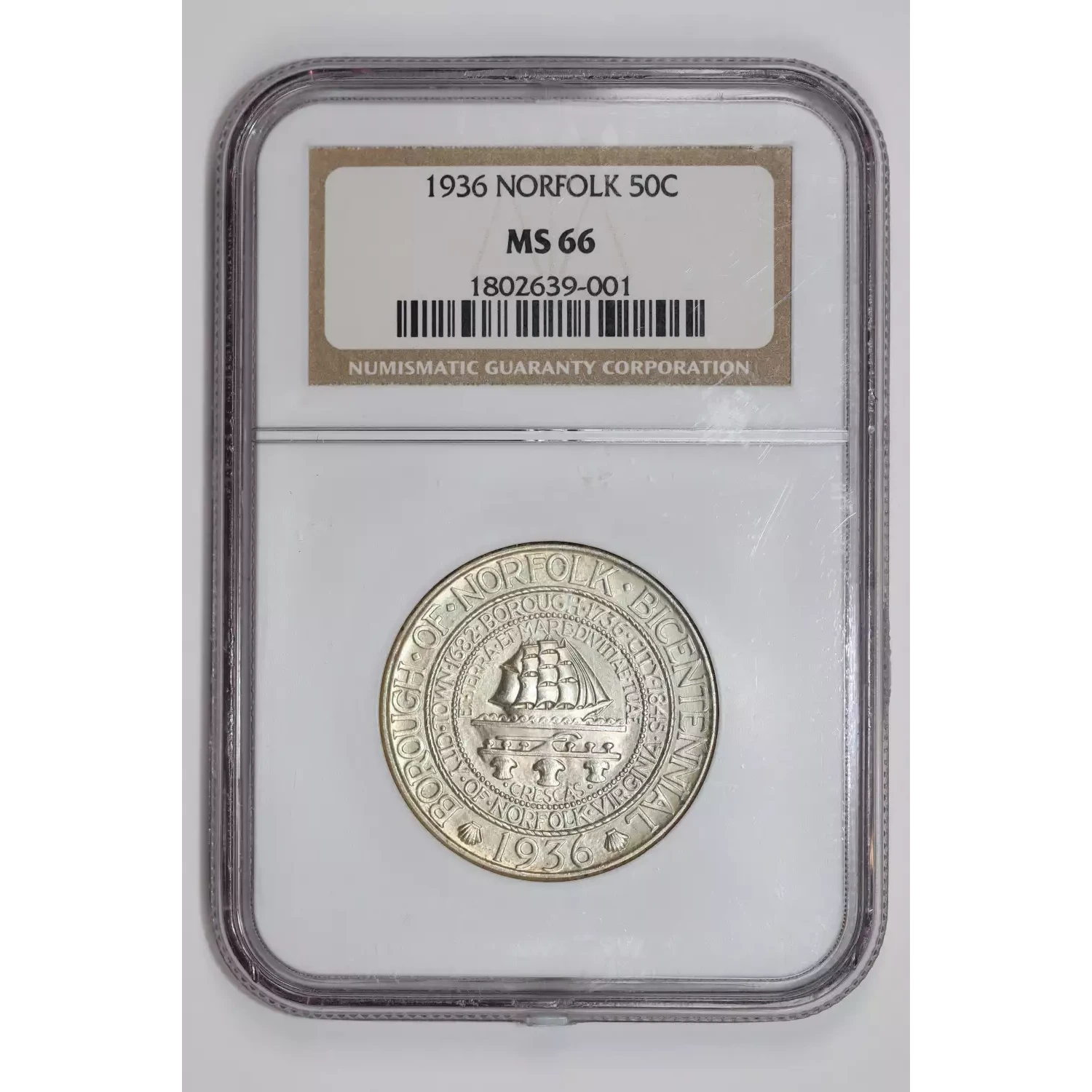 1936 Classic Commemorative Norfolk, Virginia, Bicentennial NGC MS-66 NORFOLK