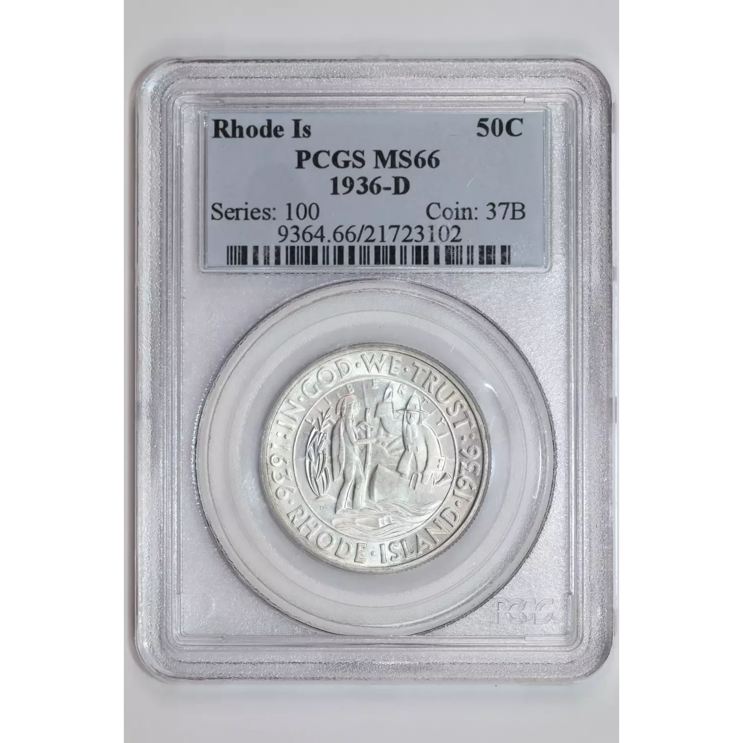 1936-D RHODE ISLAND COMMEMORATIVE HALF DOLLAR PCGS MS66 PQ!