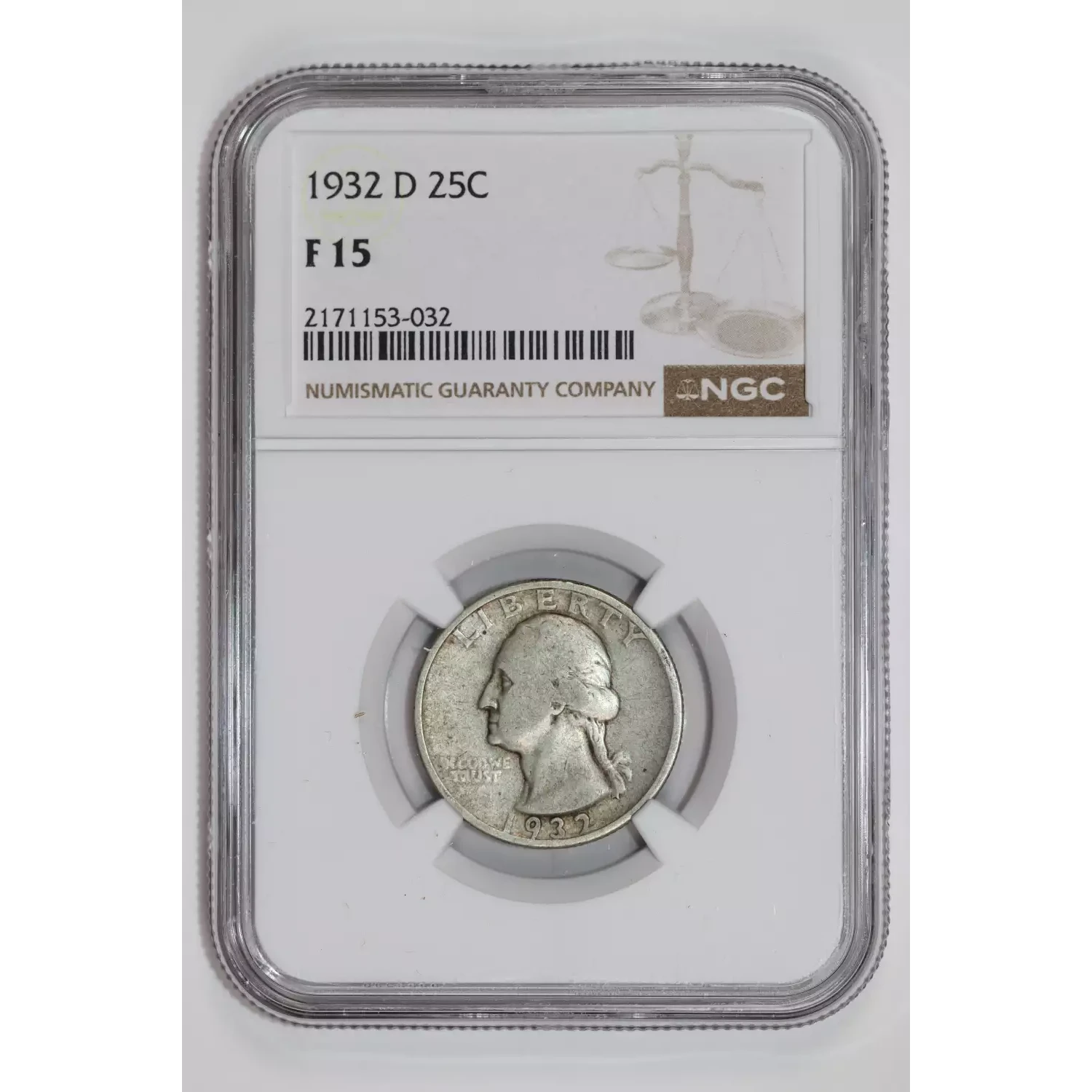 1932-D Quarter Dollars Silver Coinage NGC F-15