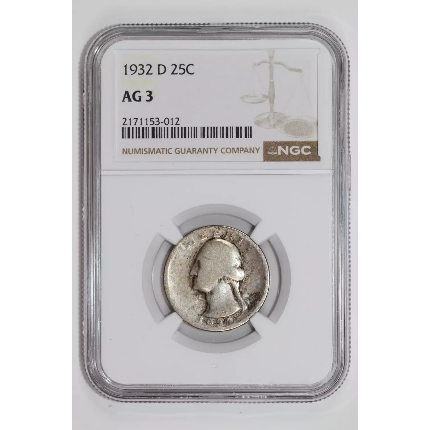 1932-D Quarter Dollars Silver Coinage NGC AG-3