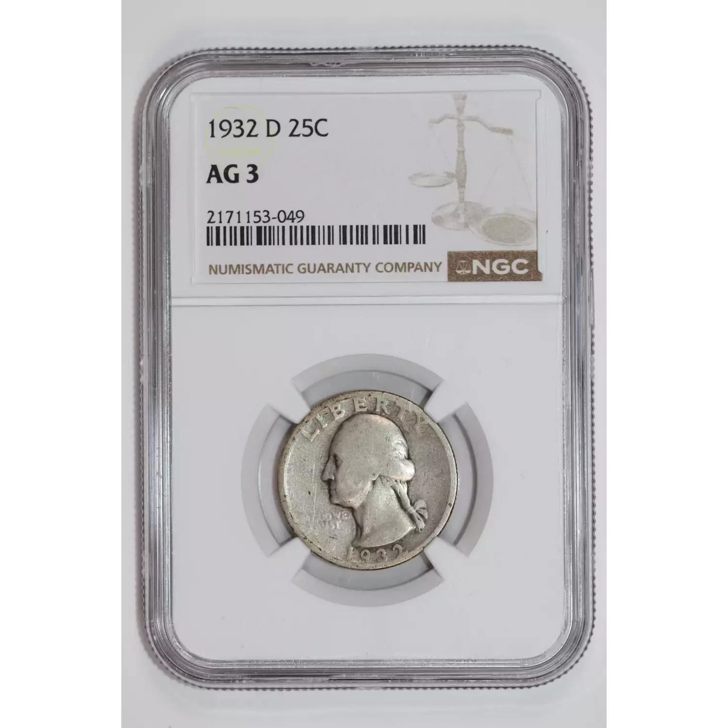 1932-D WASHINGTON QUARTER NGC AG3