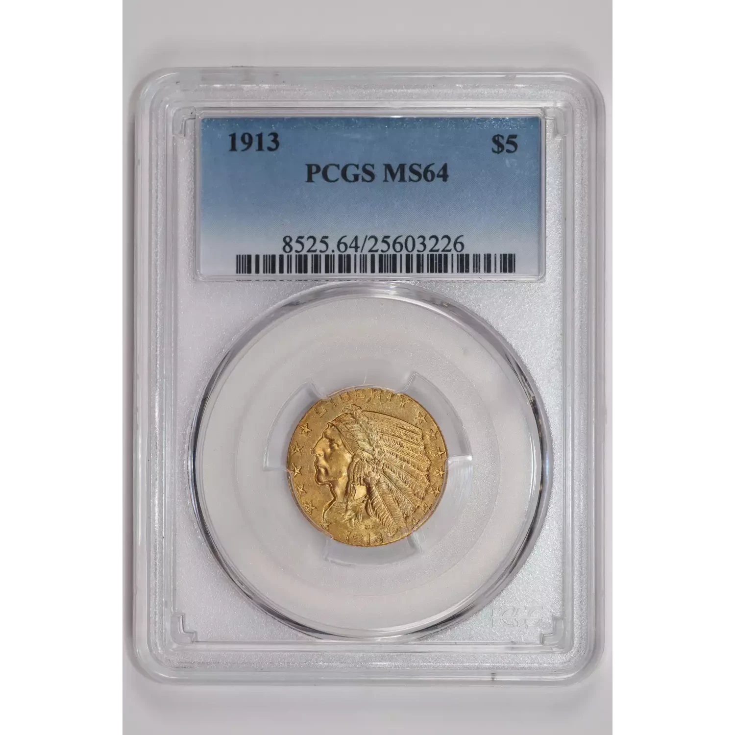 1913 $5 GOLD INDIAN HALF EAGLE PCGS MS64