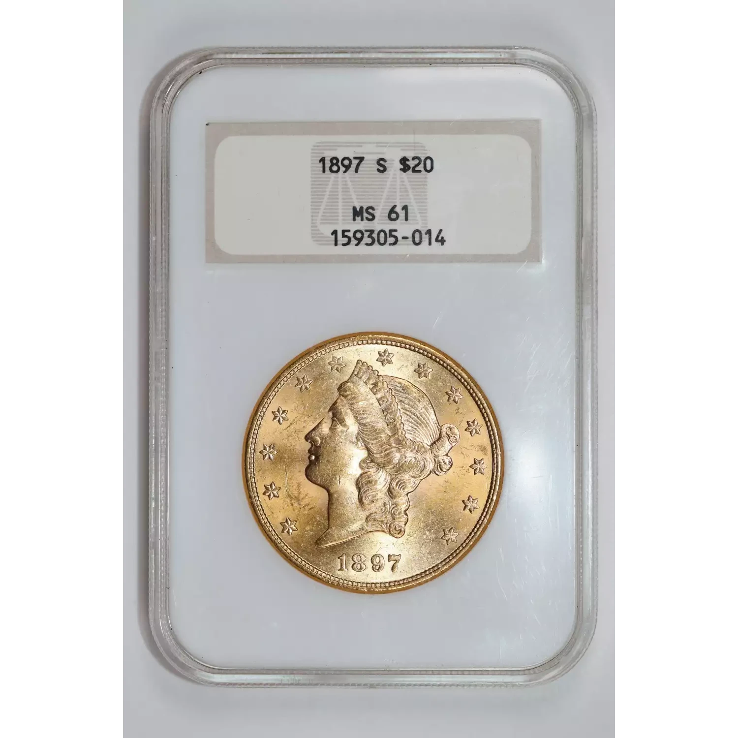 1897-S $20 GOLD LIBERTY DOUBLE EAGLE NGC MS61 OLD FATTY HOLDER!