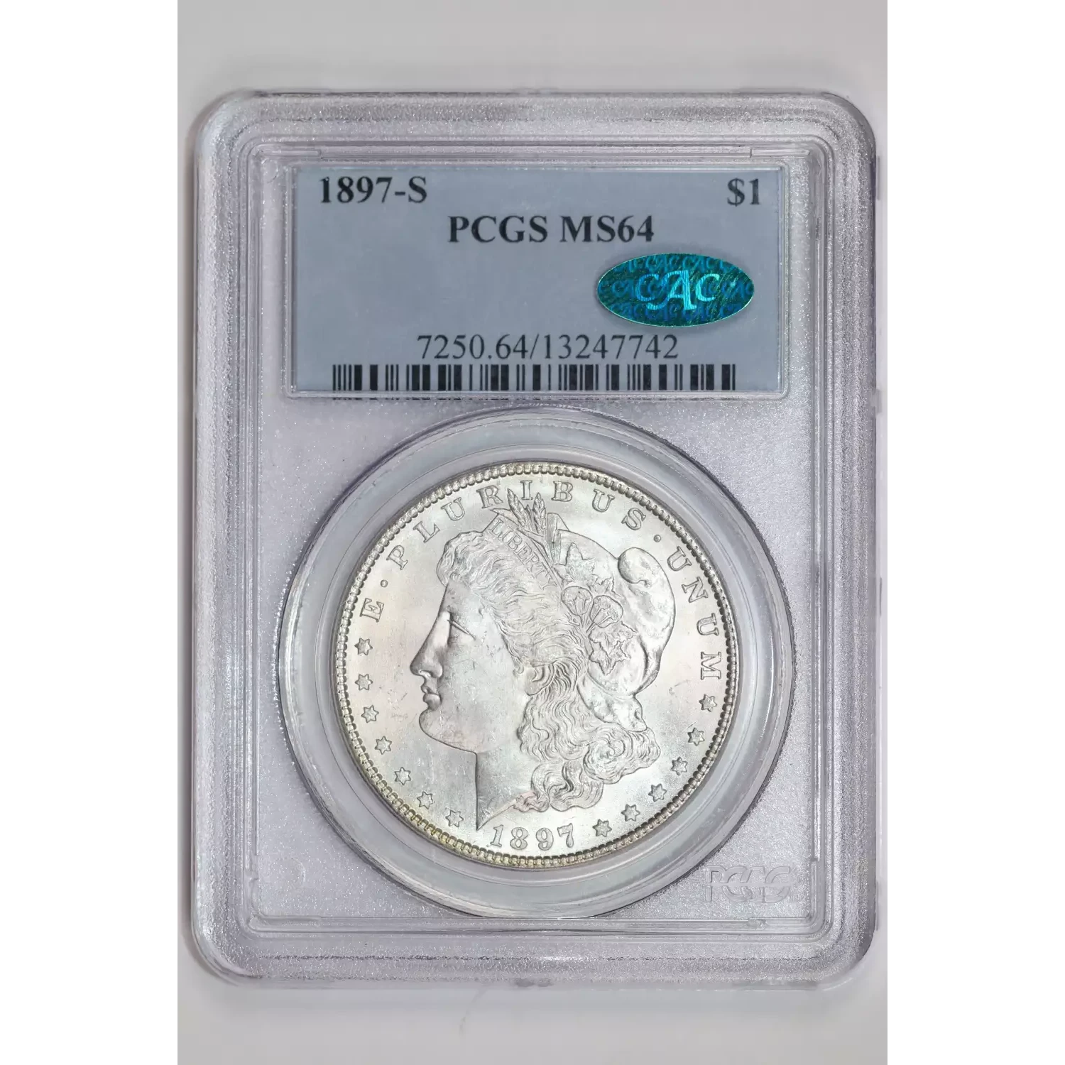 1897-S MORGAN DOLLAR PCGS MS64 CAC VERY PQ!