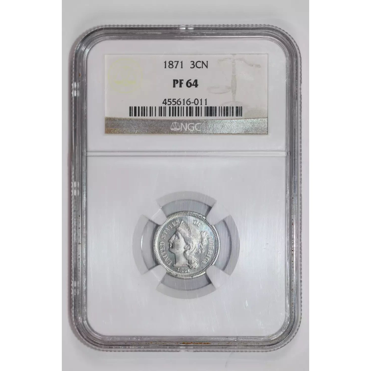 1871 PROOF THREE CENT NICKEL NGC PR64