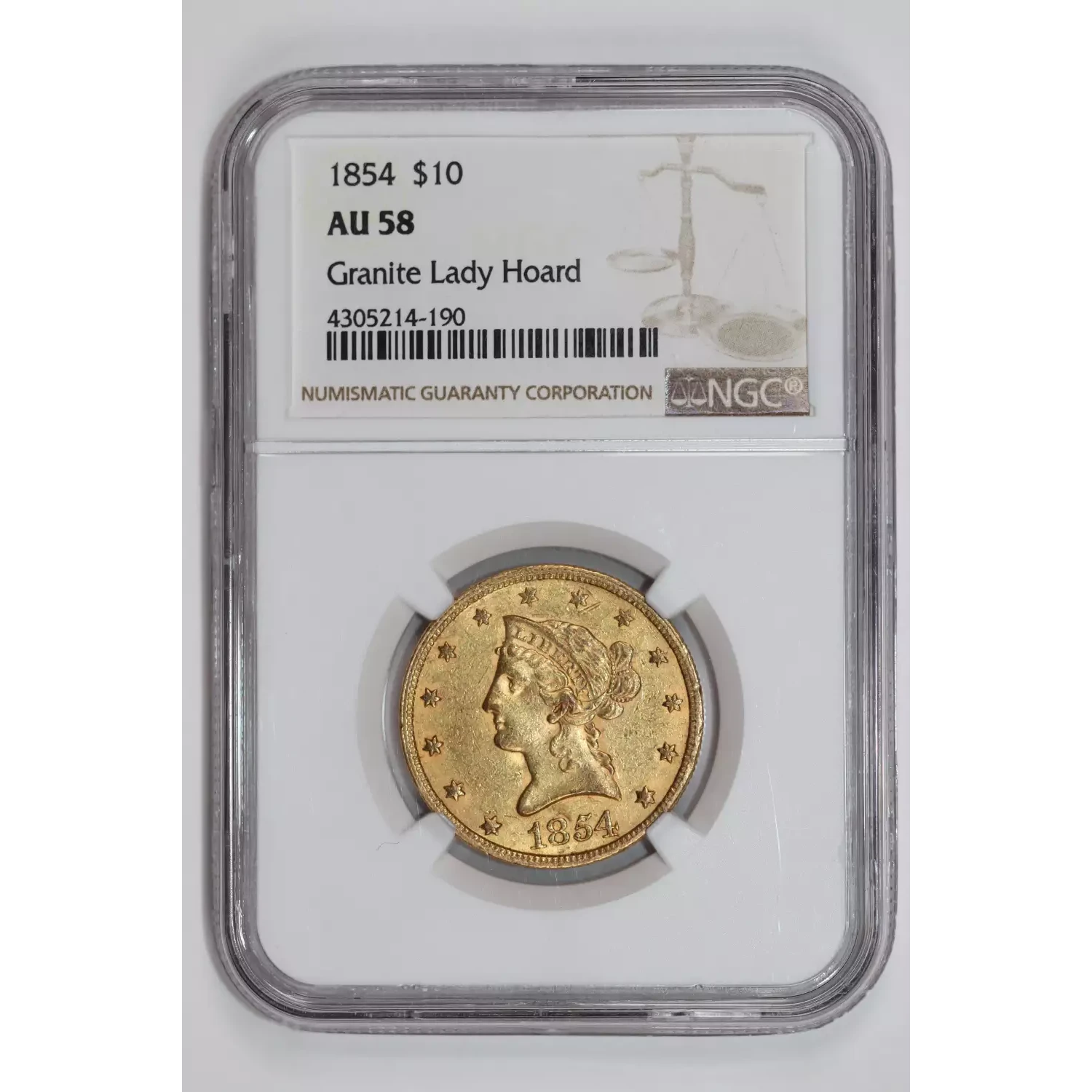 1854 $10 GOLD LIBERTY EAGLE NGC AU58 - ONLY 54,250 MINTED! TOUGH DATE!