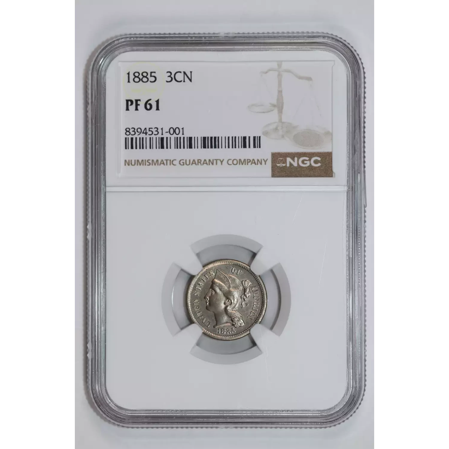 1885 Three Cent Pieces (Nickel) NGC PF-61