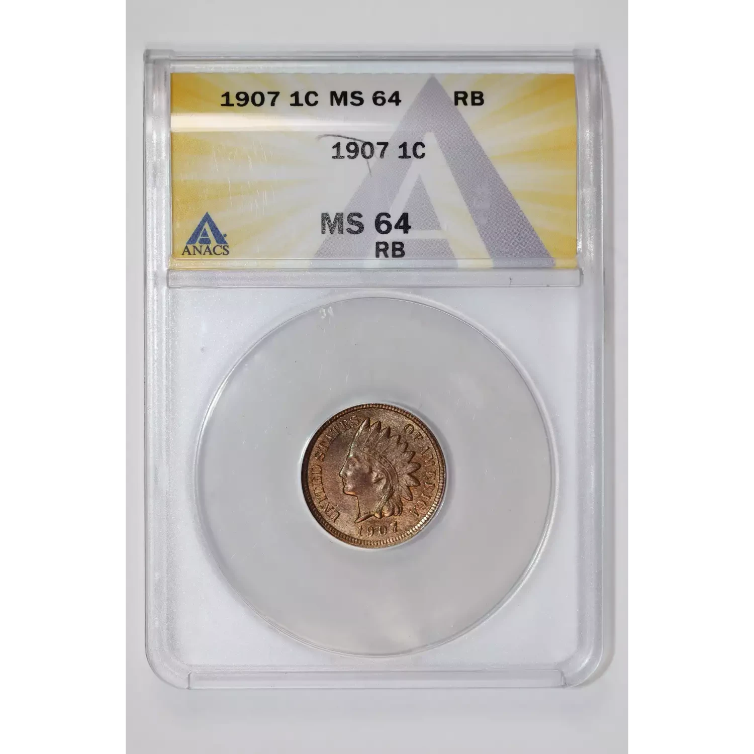 1907 INDIAN HEAD CENT ANACS MS64 RB