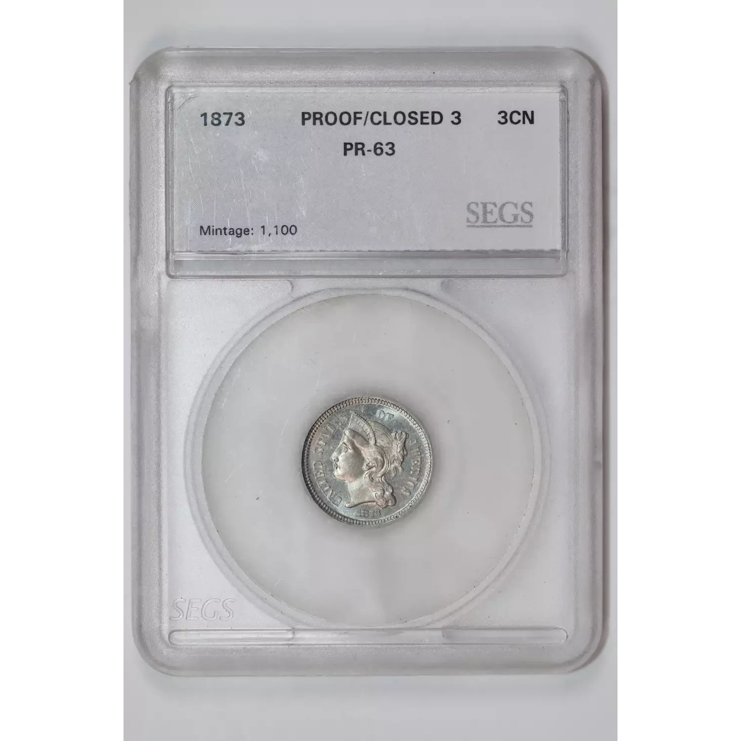 1873 CLOSED 3 PROOF THREE CENT NICKEL RAW CHOICE PROOF