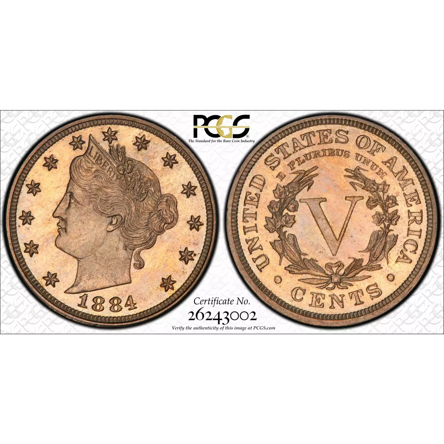 1884 PROOF LIBERTY V NICKEL PCGS PR64