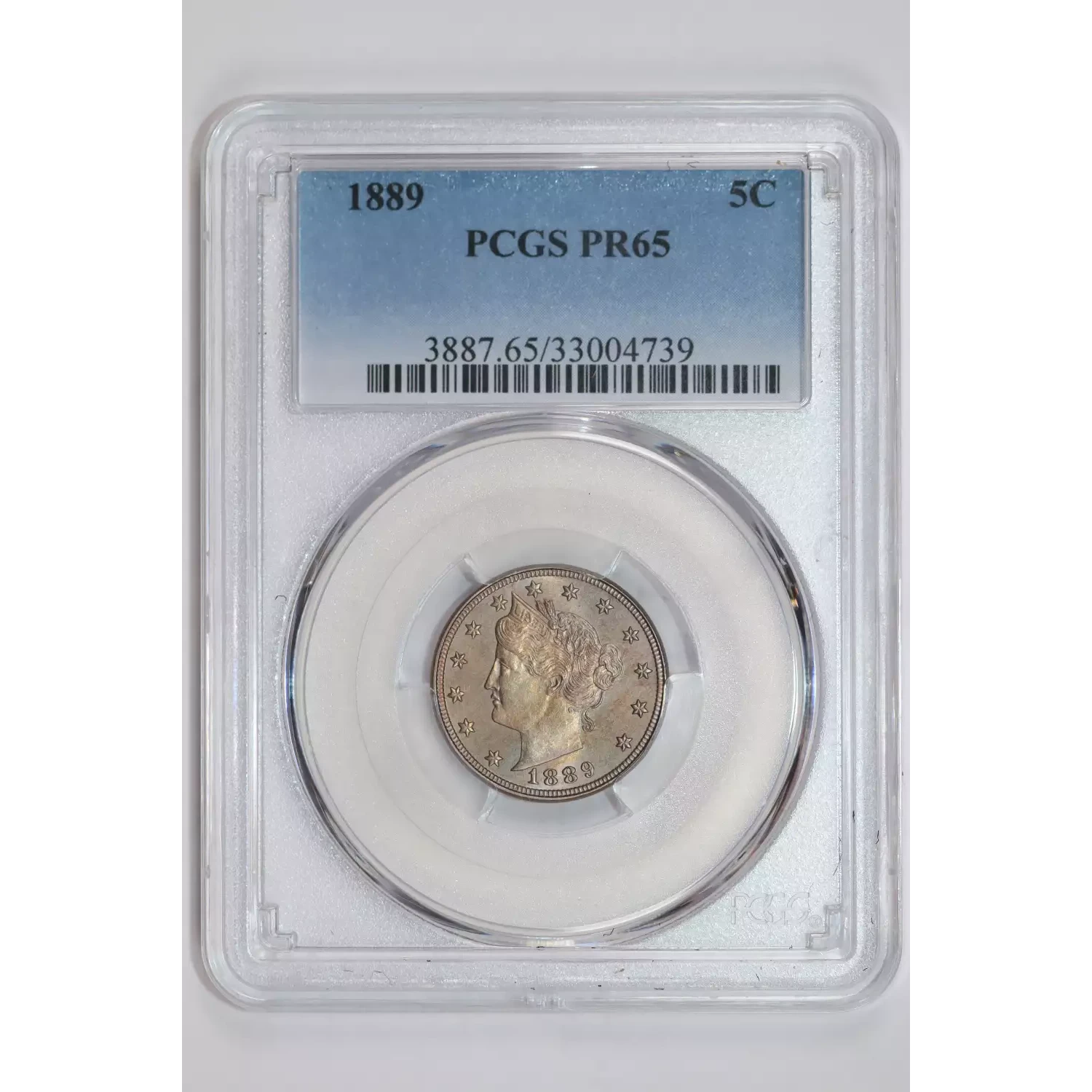 1889 PROOF LIBERTY V NICKEL PCGS PR65