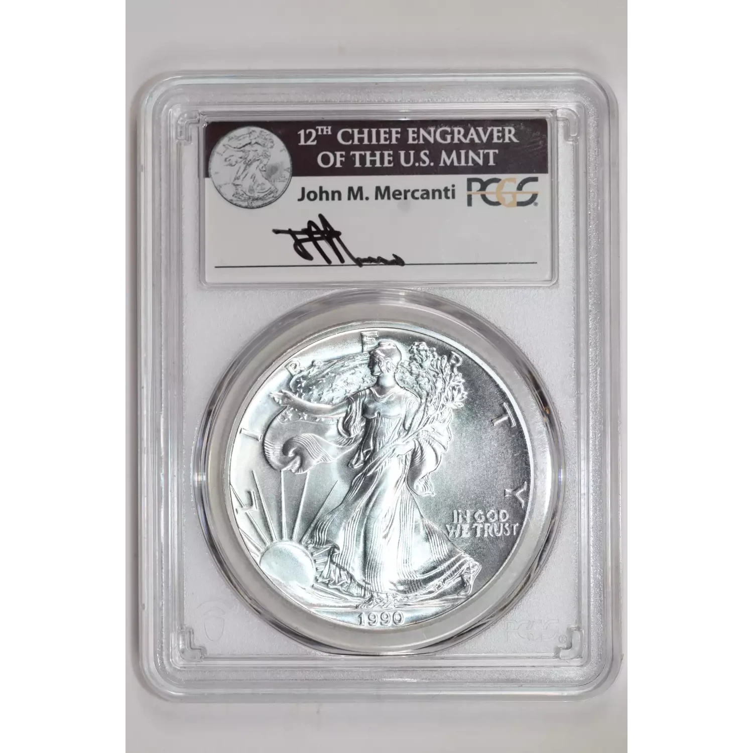 1990 SILVER EAGLE PCGS MS70 MERCANTI SIGNATURE