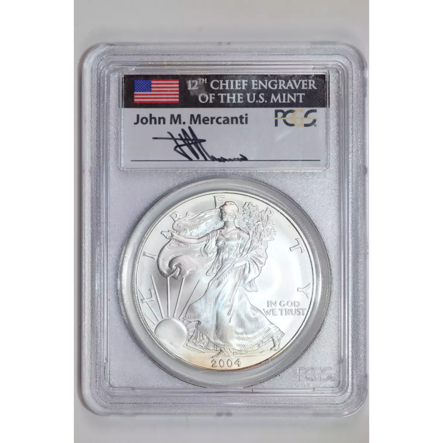 2004 Bullion Silver Eagles PCGS MS-70 Silver Eagle Mercanti Signature 1st Strike