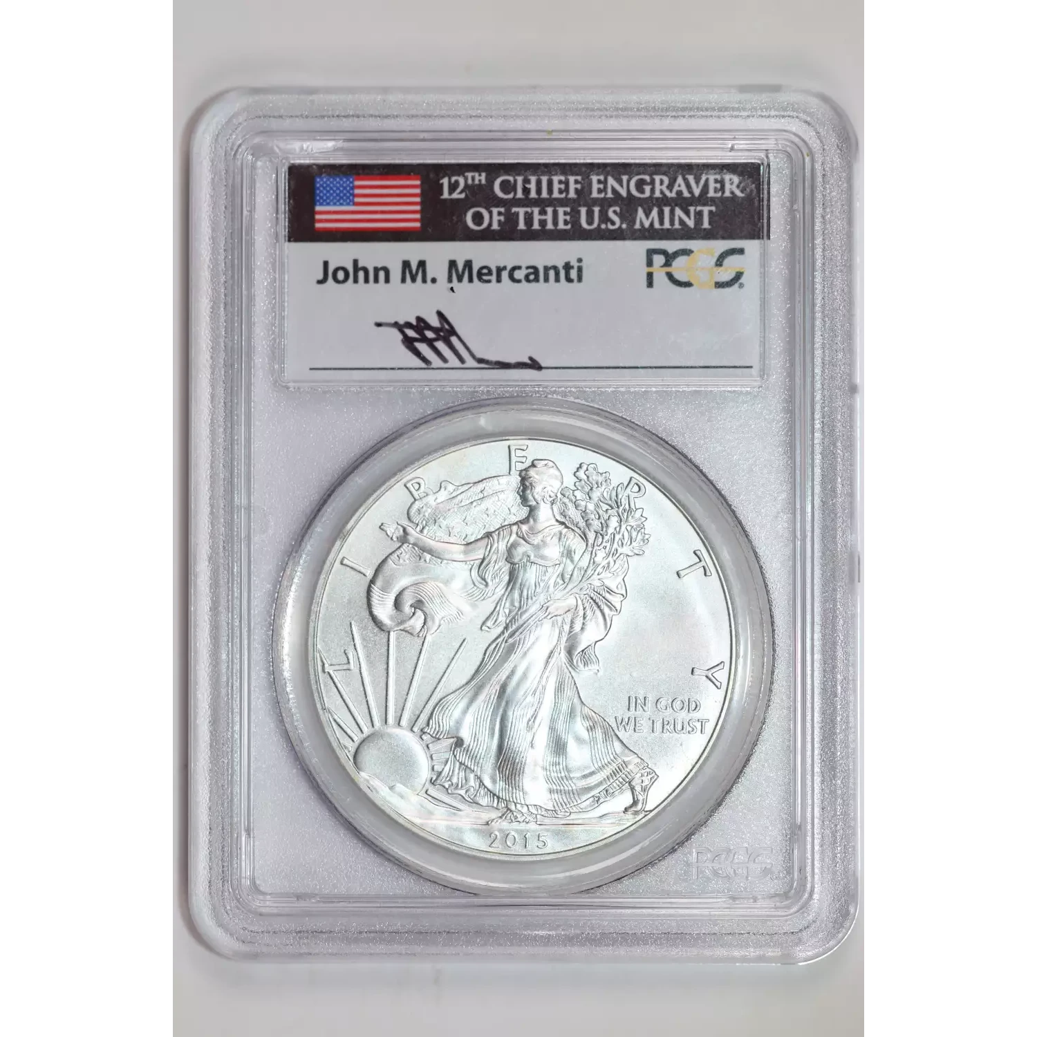 2015 SILVER EAGLE PCGS MS70 MERCANTI SIGNATURE FIRST STRIKE