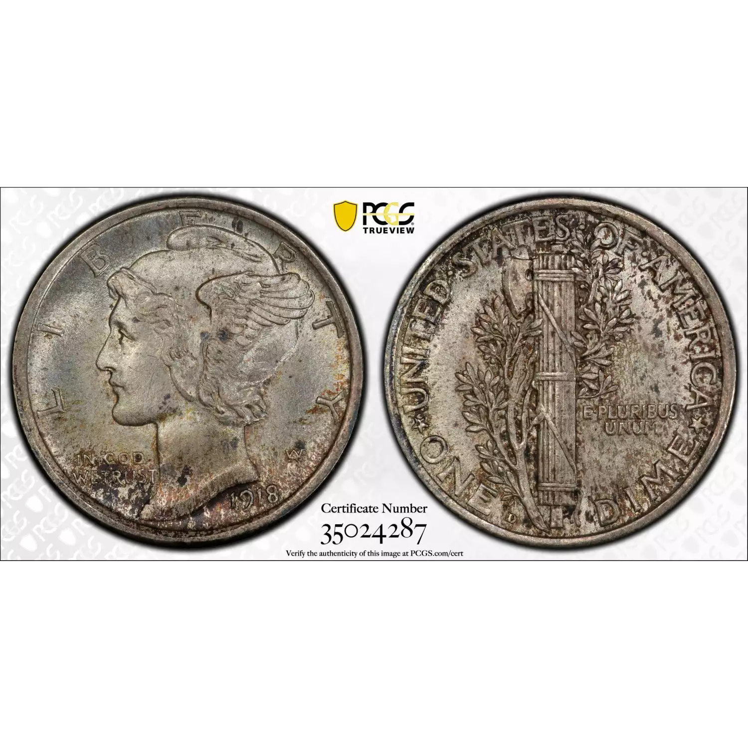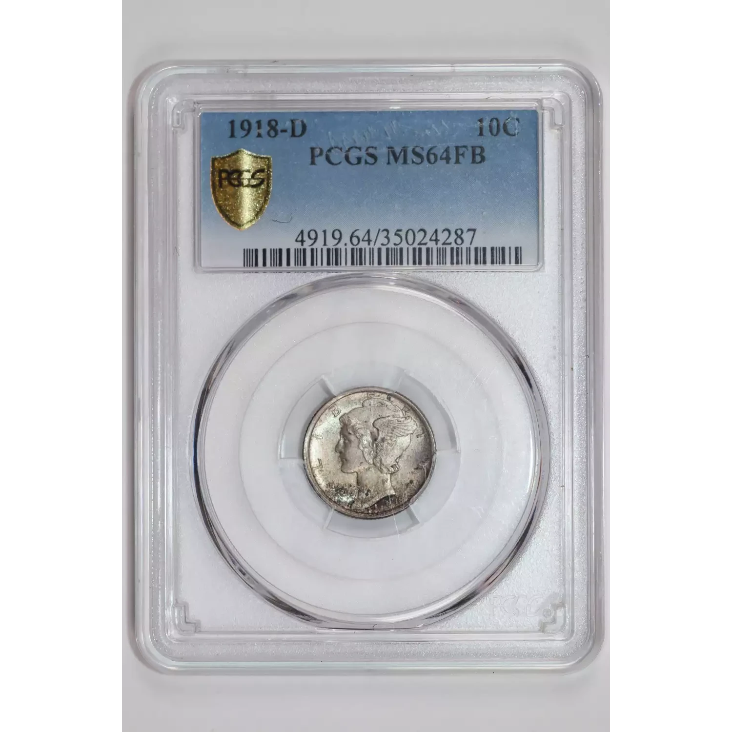 1918-D Dimes Winged Liberty Head or Mercury PCGS MS-64 FB