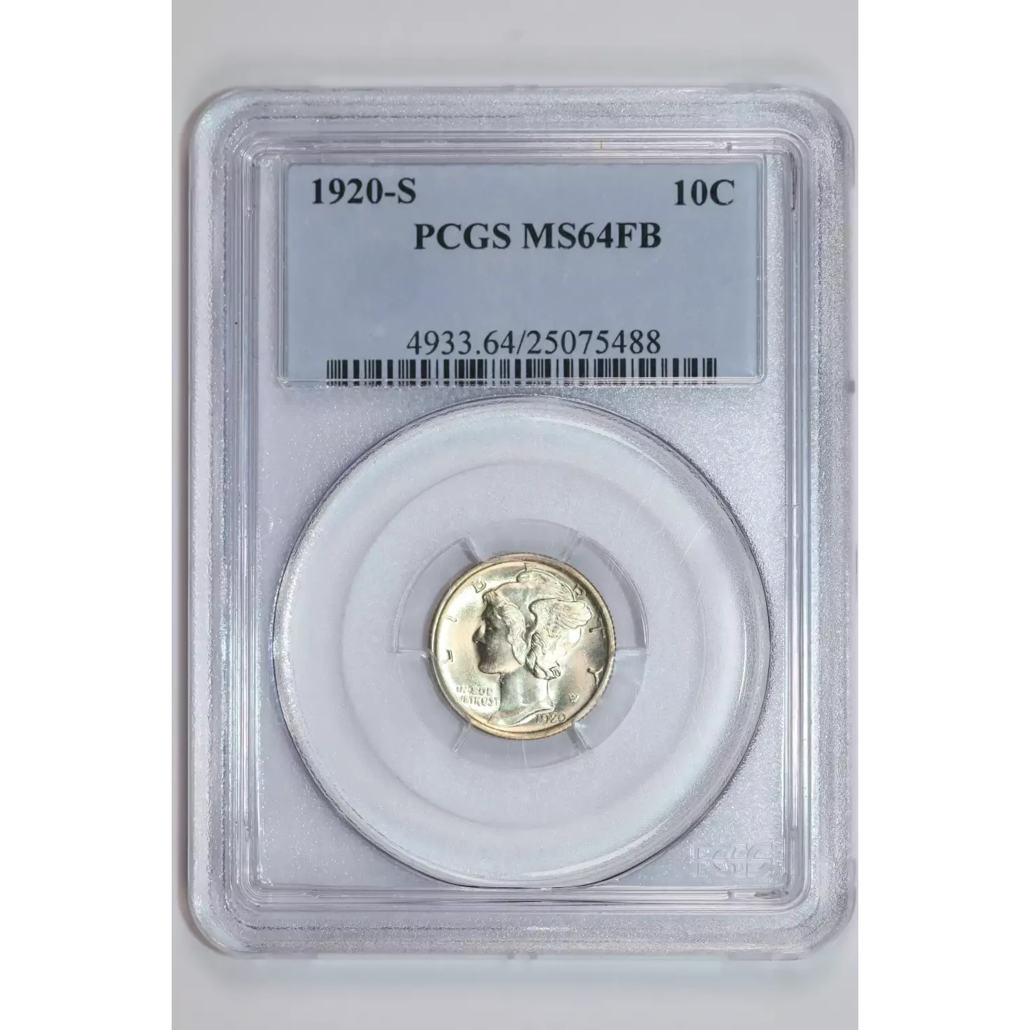 1920-S Dimes Winged Liberty Head or Mercury PCGS MS-64 FB