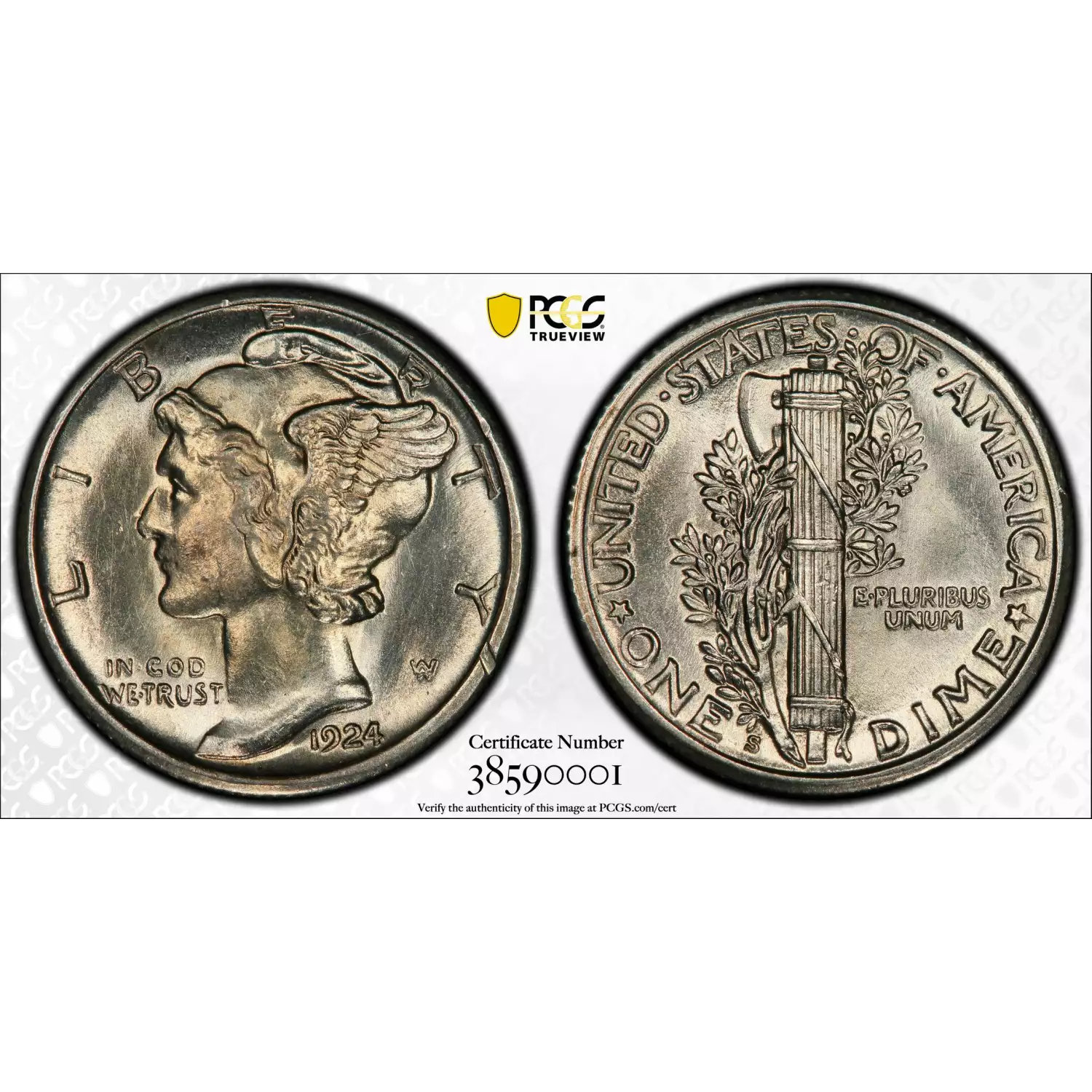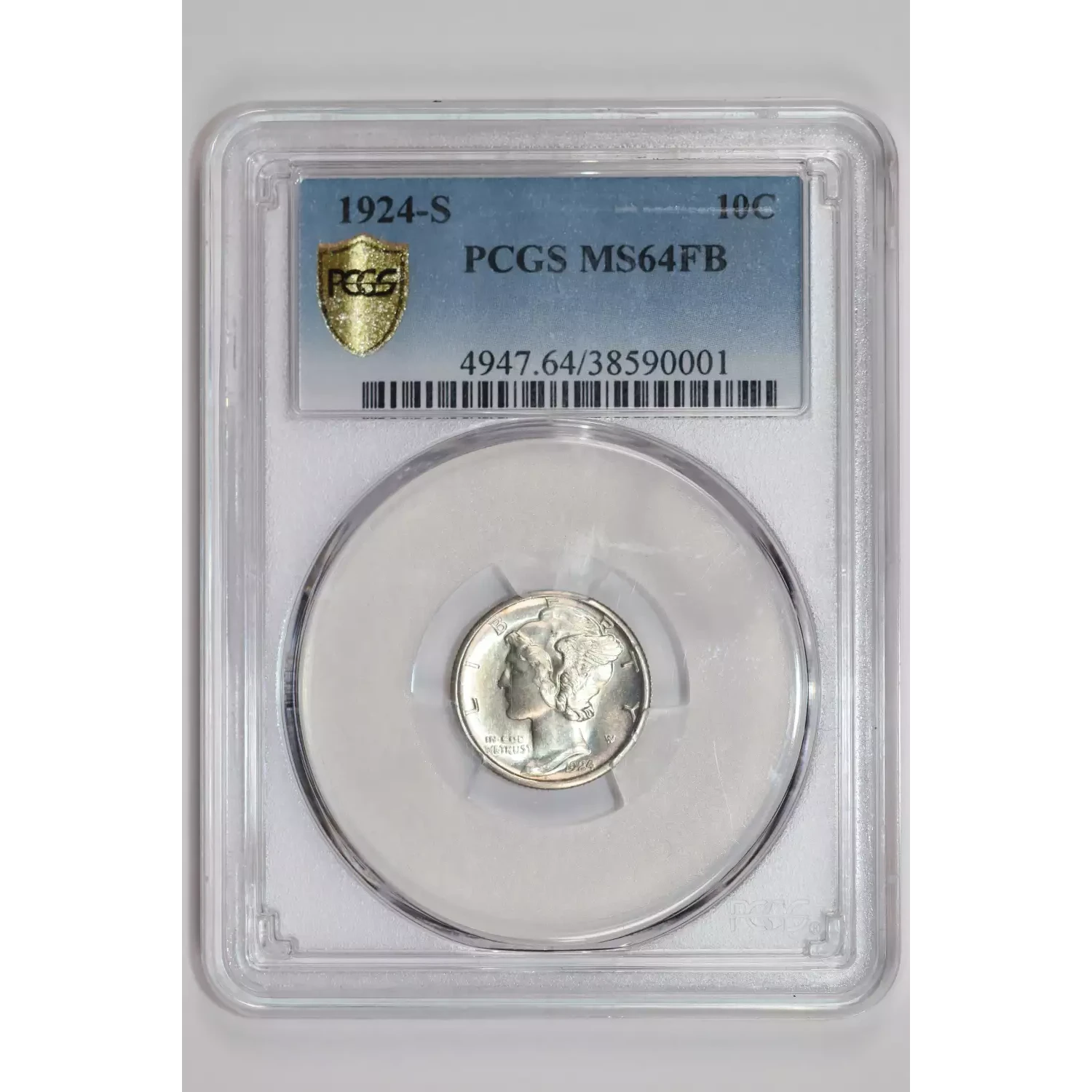 1924-S Dimes Winged Liberty Head or Mercury PCGS MS-64 FB