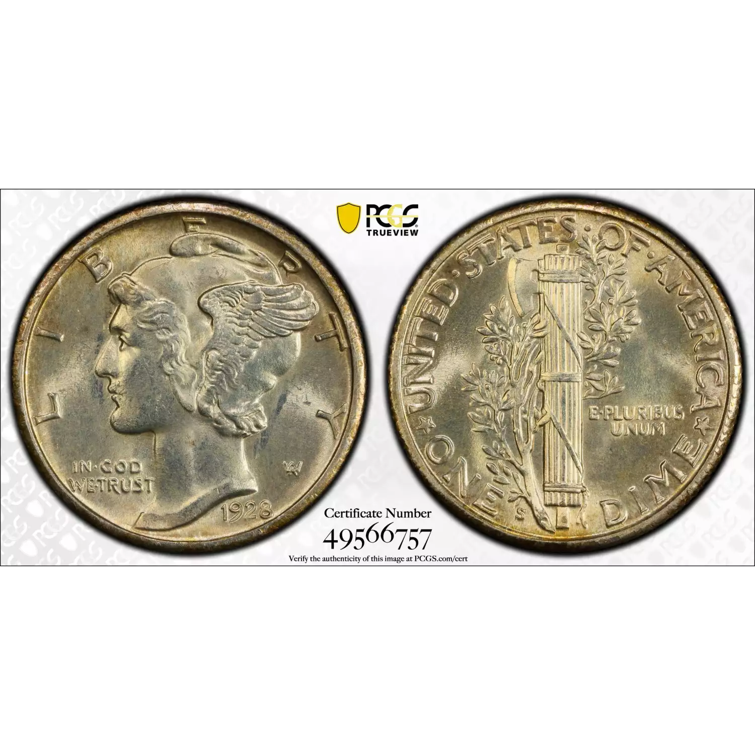 1928-S Dimes Winged Liberty Head or Mercury PCGS MS-64 FB