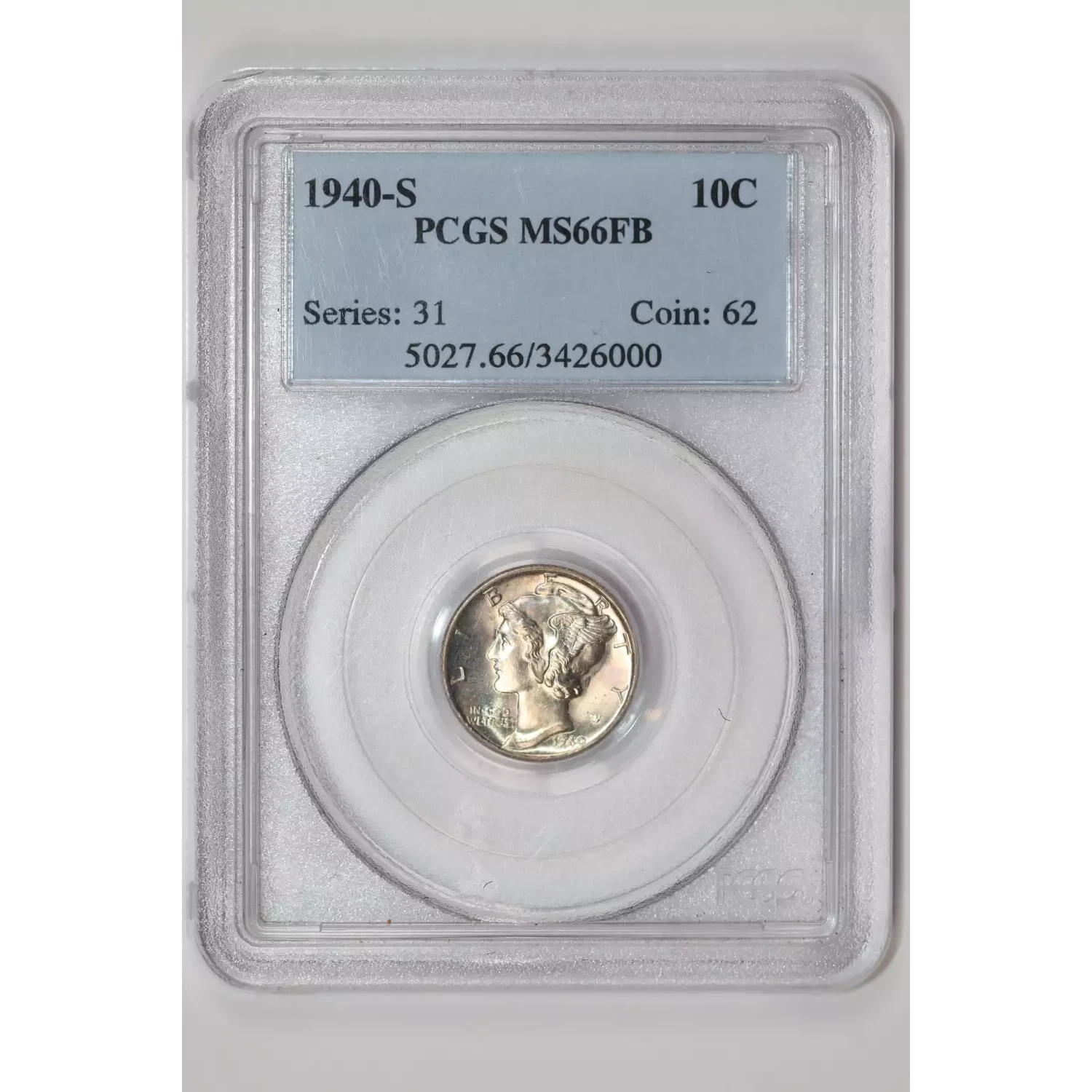 1940-S MERCURY DIME PCGS MS66 FB ORIGINAL! PQ!