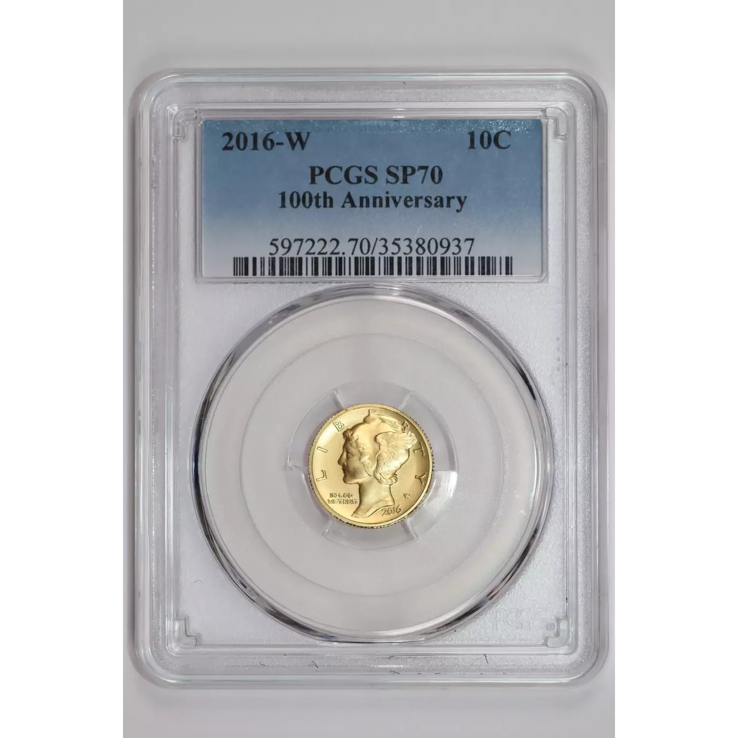 2016-W GOLD MERCURY DIME 100TH ANNIVERSARY PCGS SP70