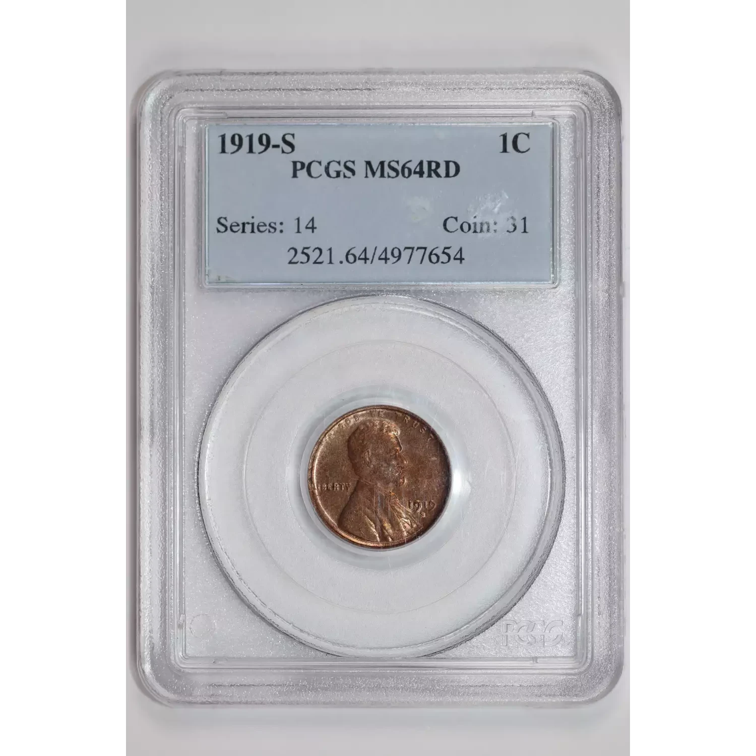 1919-S LINCOLN WHEAT CENT PCGS MS64 RED