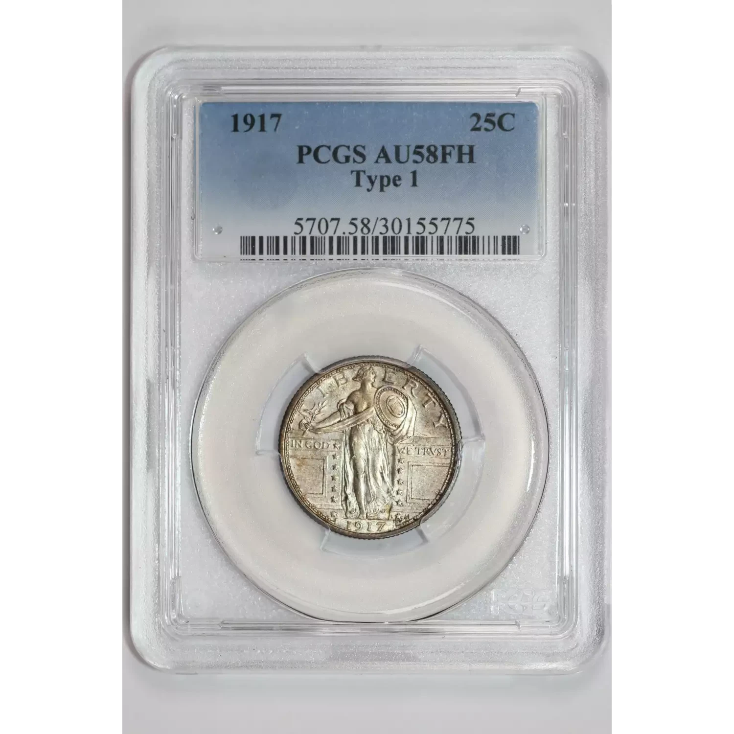 1917 Quarter Dollars Standing Liberty Quarter PCGS AU-58 FH Type 1