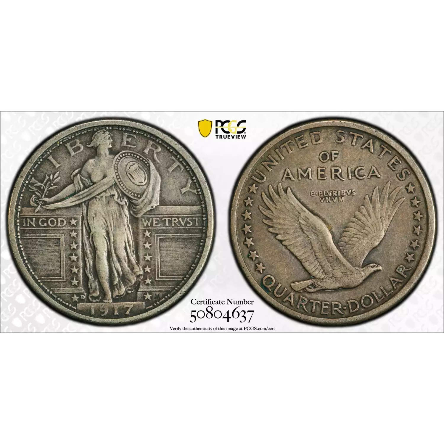 1917-D Quarter Dollars Standing Liberty Quarter PCGS XF-45 Type 1