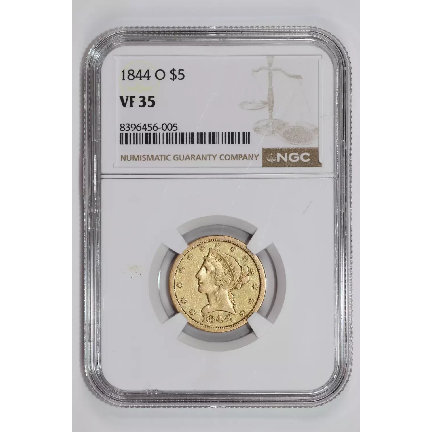 1844-O $5 GOLD LIBERTY HALF EAGLE NGC VF35