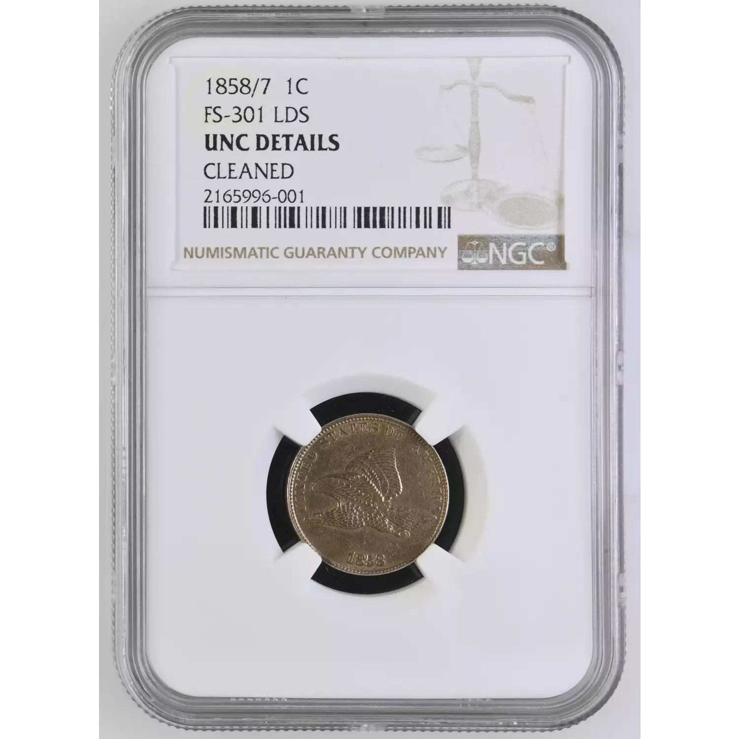 1858/7 FS-301 LATE DIE STATE OVERDATE FLYING EAGLE CENT NGC UNC DETAILS - RARE!