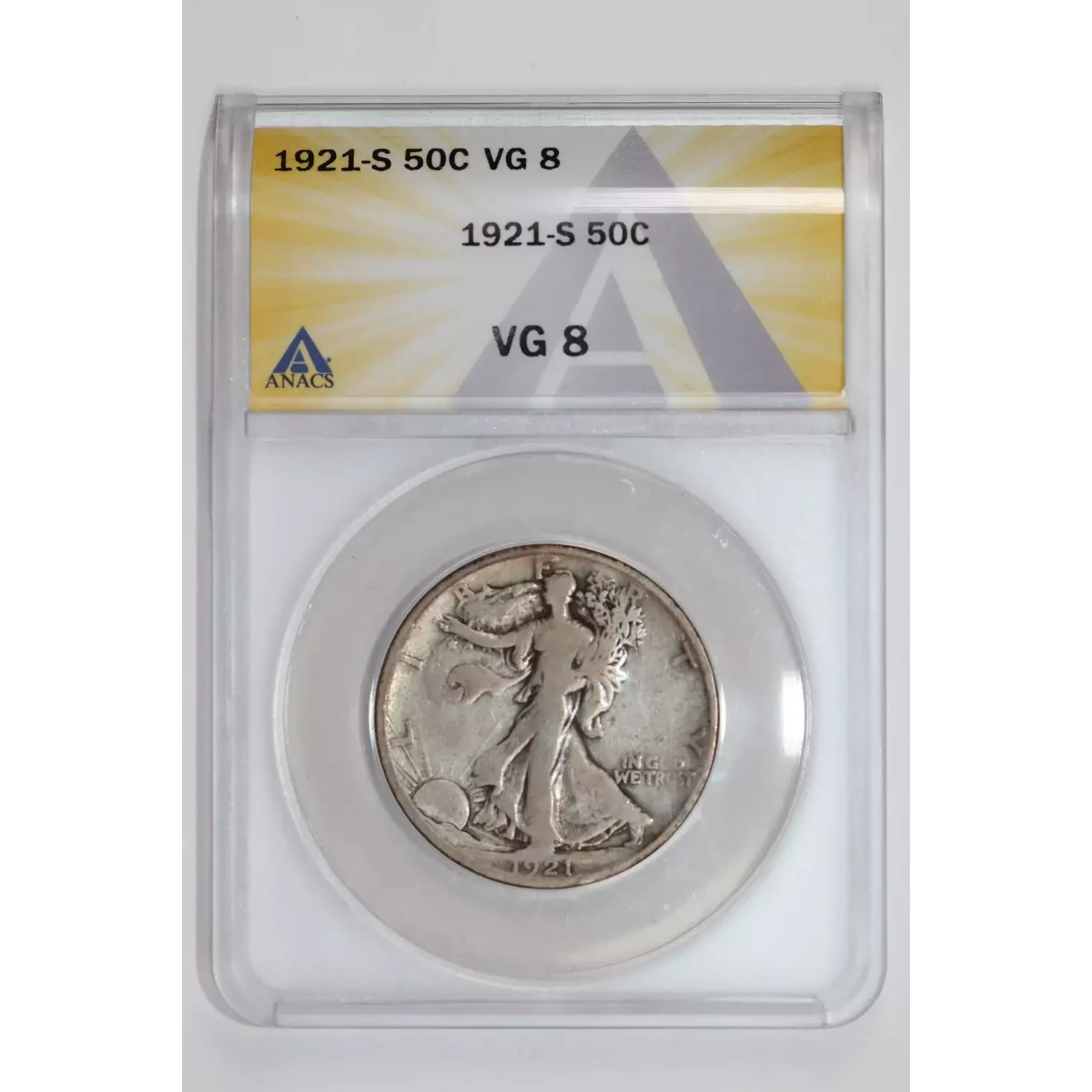 1921-S WALKING LIBERTY HALF DOLLAR ANACS VG8