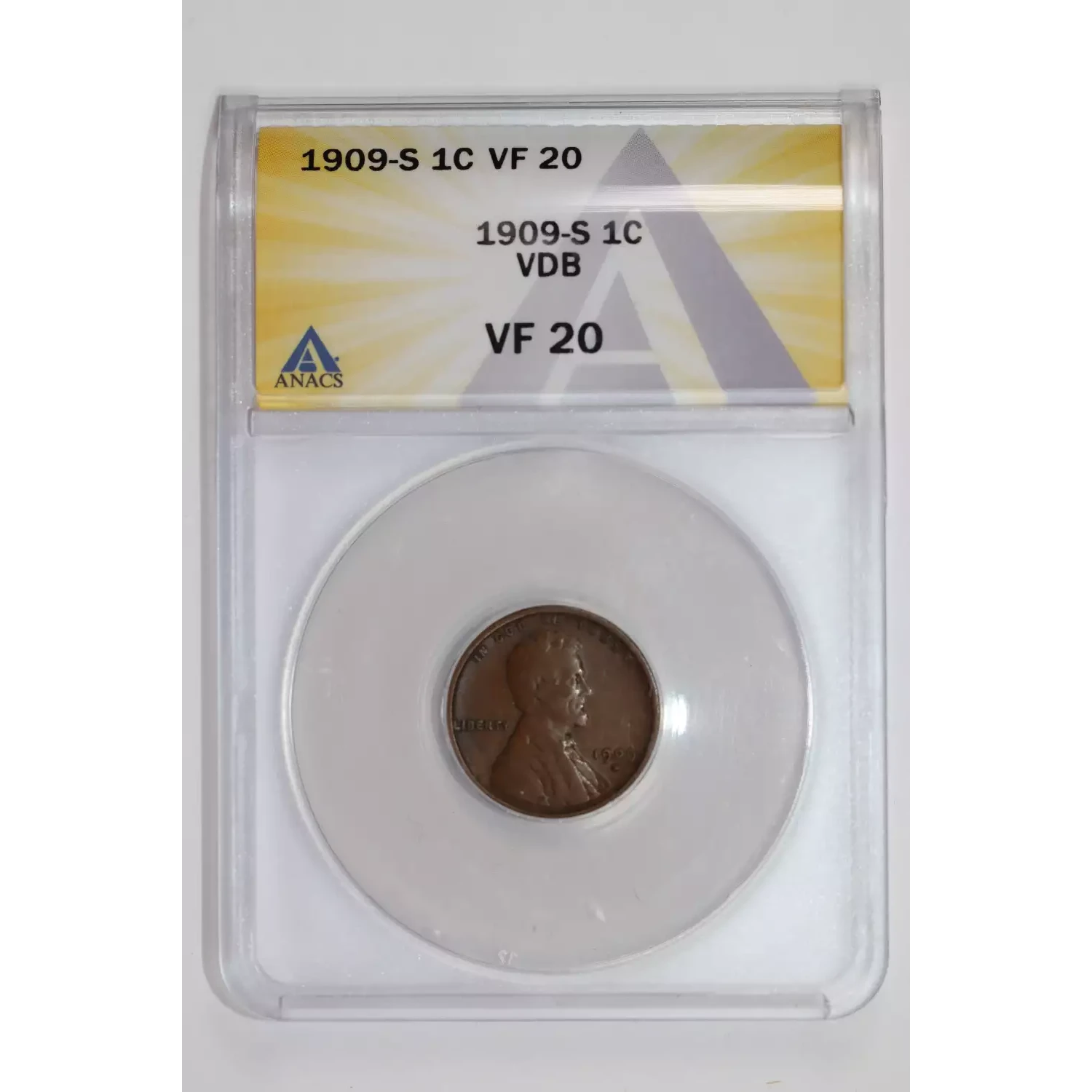 1909-S VDB LINCOLN WHEAT CENT ANACS VF20