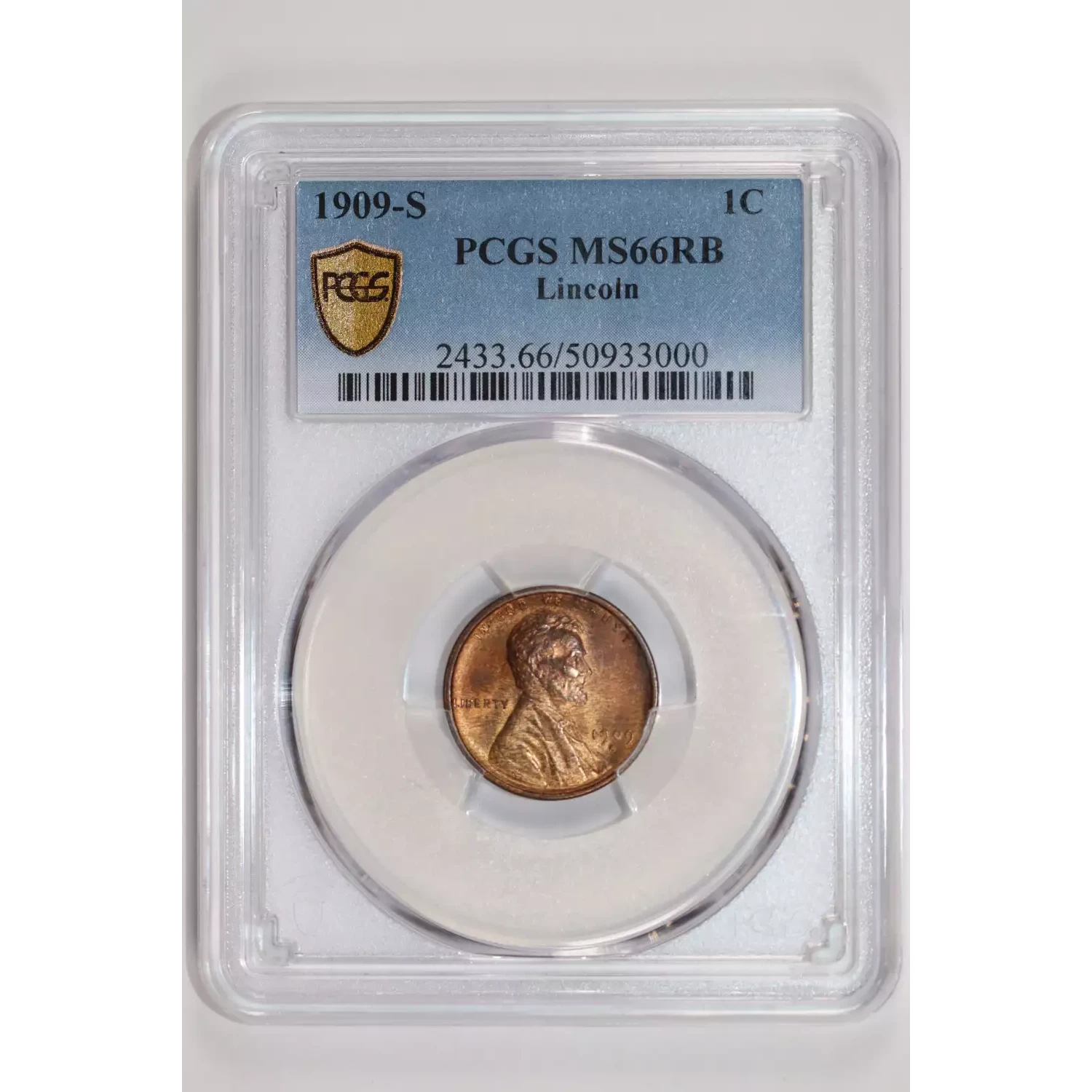 1909-S Small Cents Lincoln, Wheat Ears Reverse PCGS MS-66 RB Lincoln