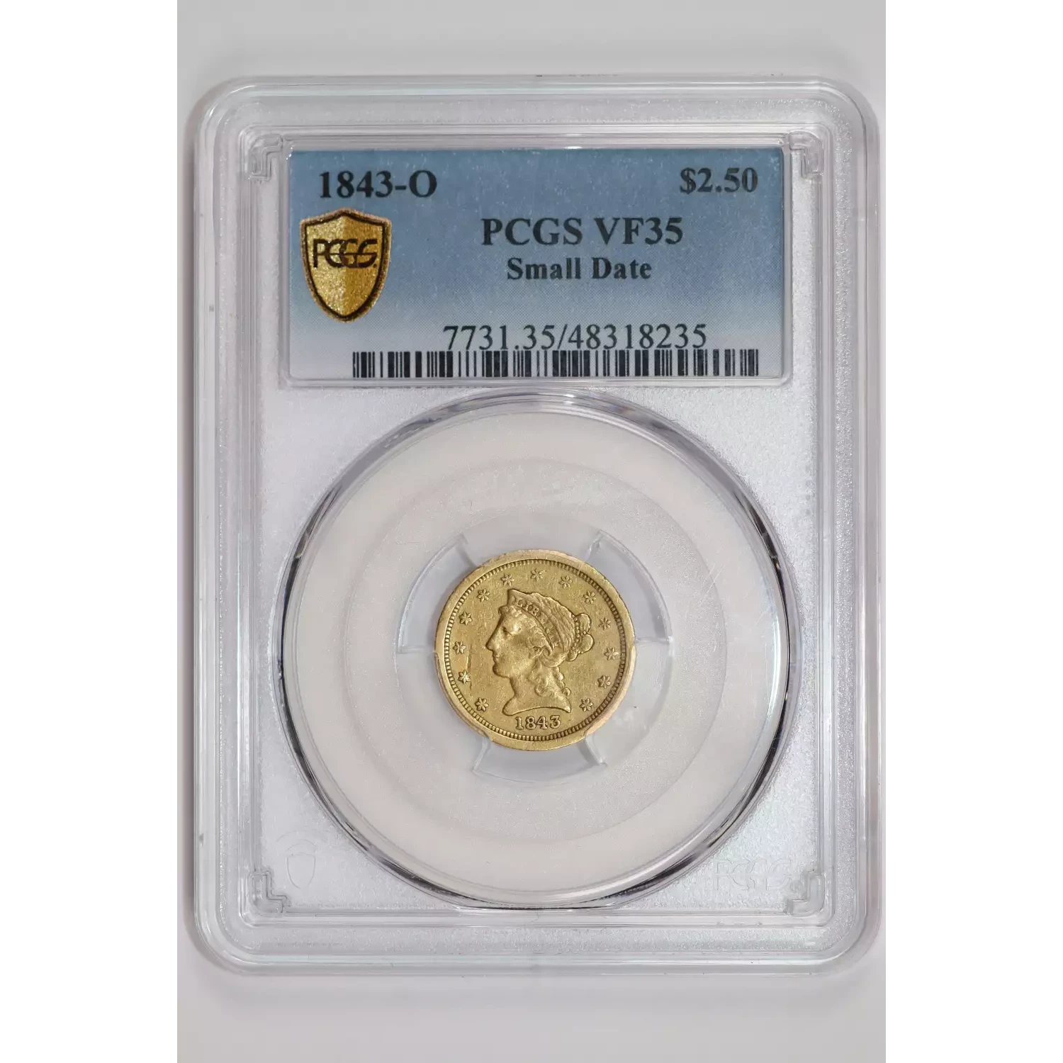 1843-O SMALL DATE $2.5 GOLD LIBERTY QUARTER EAGLE PCGS VF35