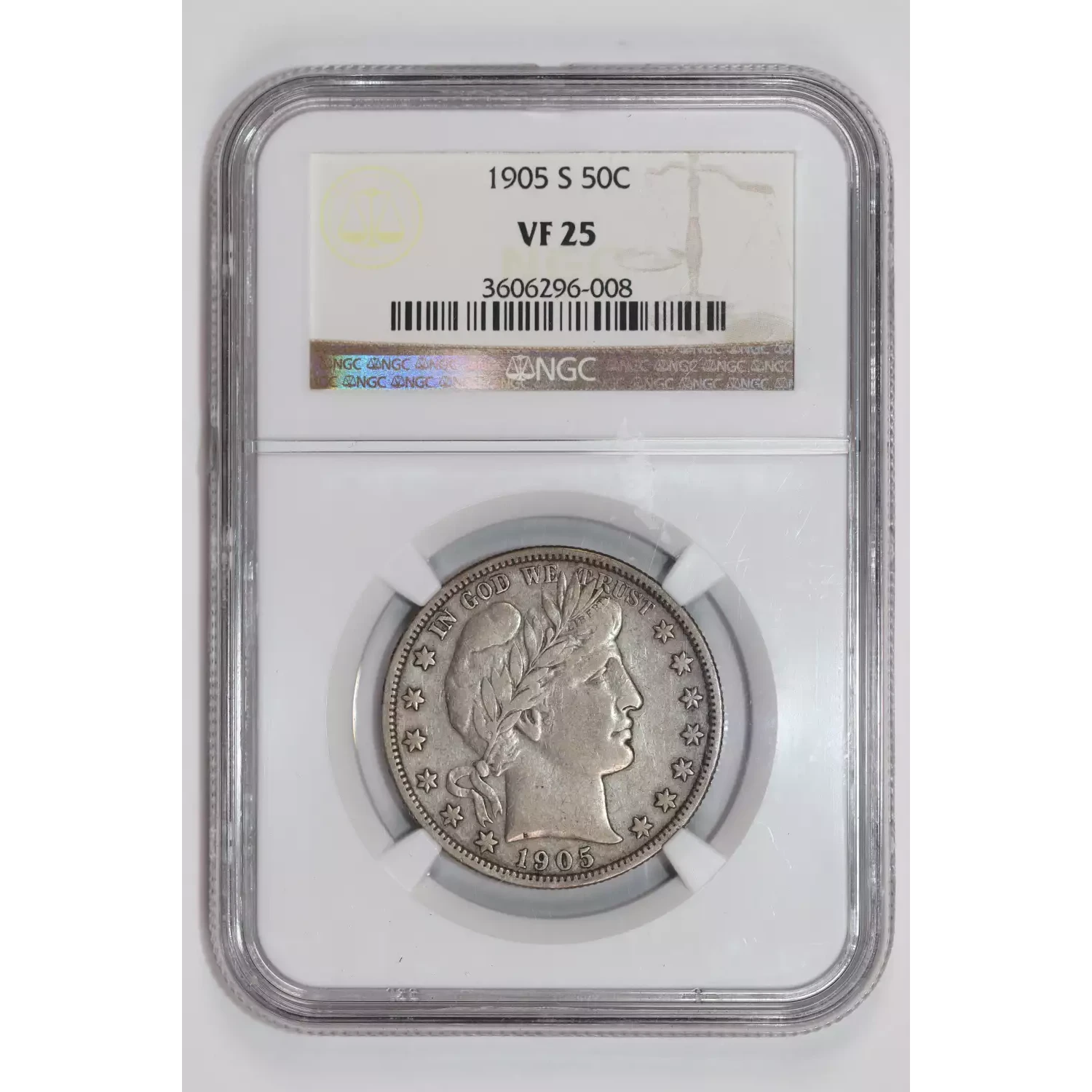 1905-S BARBER HALF DOLLAR NGC VF25 NICE ORIGINAL COIN!