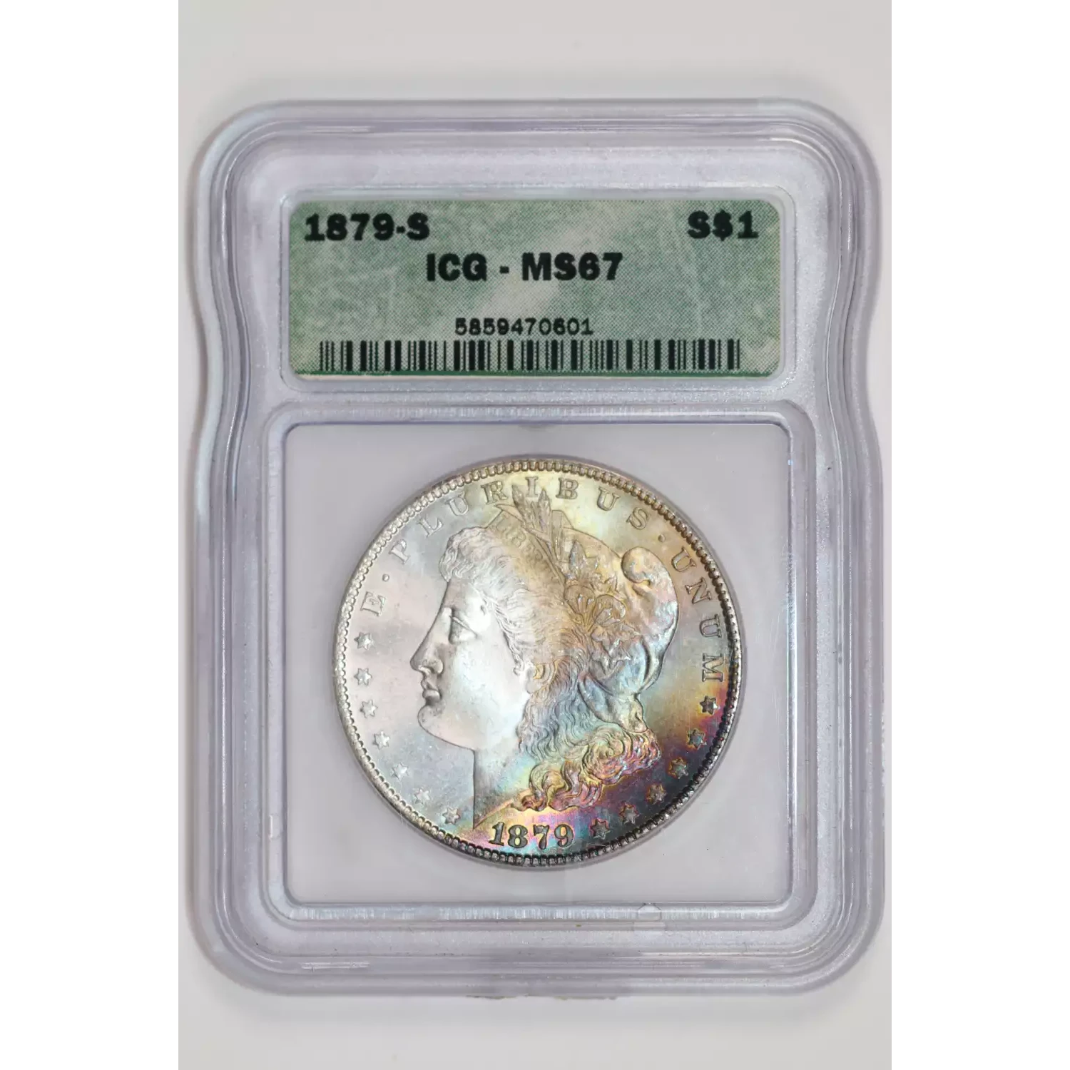 1879-S MORGAN DOLLAR ICG MS67 RAINBOW TONING!